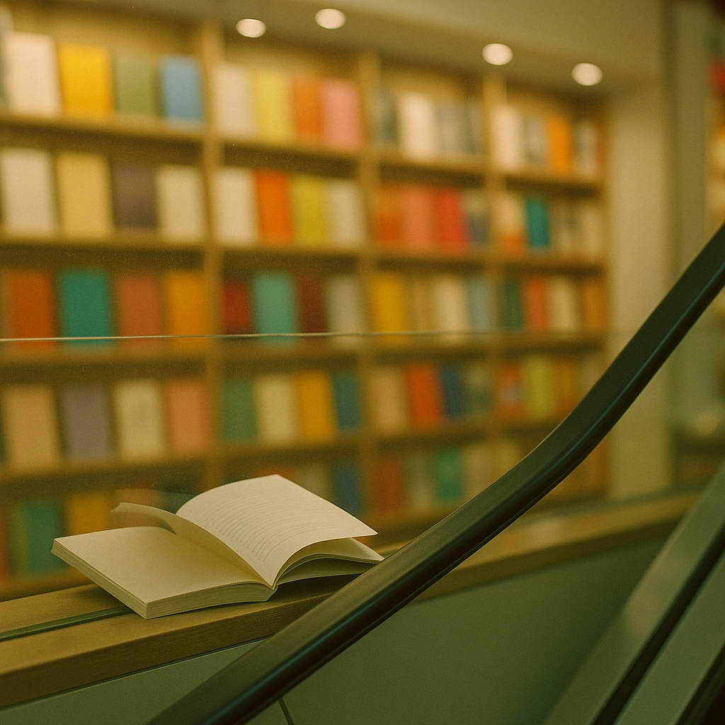 계단으로 향한다. 유리 난간 너머로 층층의 표지들이 흐린 색면처럼 겹친다. 바람이 거의 없는 실내에서 에스컬레이터만 작은 바람을 만든다. 그 바람이 페이지를 아주 얇게 들어 올리는 모습이 보인다. 나는 계단참에 앉아 무릎 위에 책을 올린다. 고르지 않고 머무는 첫 동작이다. 오늘은 이곳에서 한 장만 읽을 생각이다. 한 장이면 충분하다. 충분하다는 말은 늘 부족해 보이지만, 읽는 동안에는 종종 가장 넉넉한 말이 된다.
