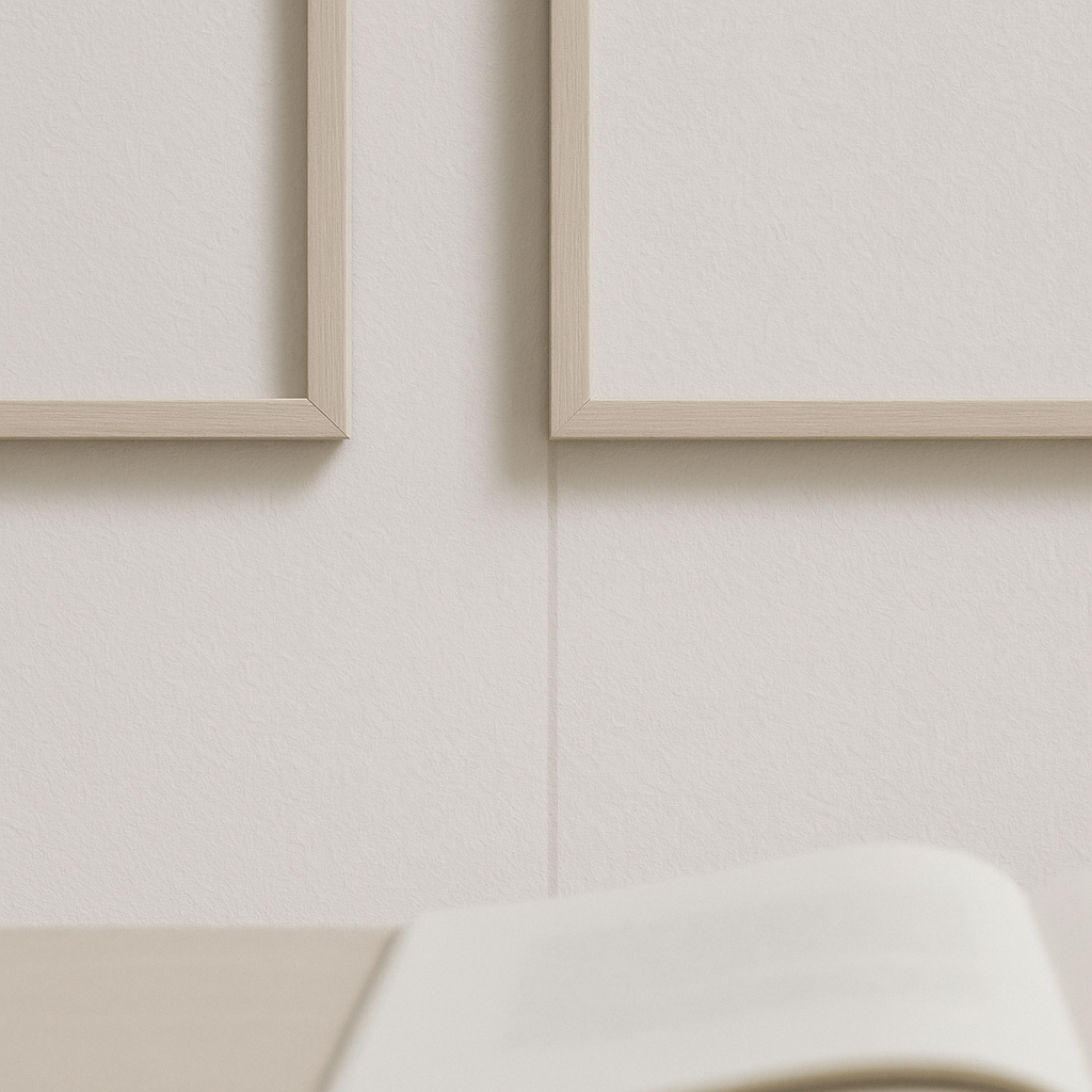 전시실로 들어서면 흰 벽이 먼저 보이고, 그다음에 프레임이 보인다. 작품들은 하나씩 자신만의 경계를 달고 있다. 나무, 알루미늄, 때로는 유리의 얇은 테두리. 나는 작품보다 먼저 그 테두리를 본다. 프레임과 여백을 보고 한 줄 읽는다. 이 순서가 오늘의 독서 순서가 된다. 전시장 벤치 한쪽에 앉아 책을 펼친다. 페이지의 여백과 벽의 여백이 같은 흰색으로 겹친다. 겹치면 안쪽의 글들이 정돈된다.