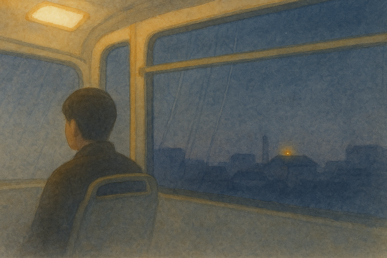 야근을 마치고 돌아가는 버스 안,