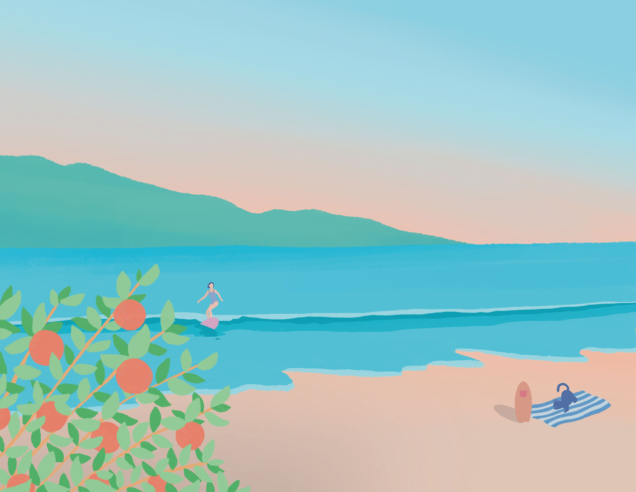+) 최근 작업한 'Balancing Life in Jeju(제주에서 삶의 균형잡기)'라는 그림인데, 나도 모르게 내가 원하는 삶의 모습을 그려 넣은듯한 그림이 그려졌다.