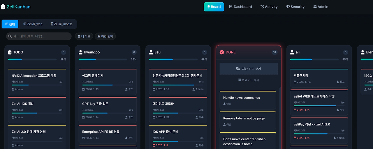 만들기 가장 힘든 파트는 Admin이었다. Admin 이 들어가면 프로젝트가 유연해야 한다. 모든 것은 Admin에서 커스터 마이징이 가능하다. 트렐로가 인당 10만 원이 넘다 보니 만들게 되었는데 다들 좋다고 한다. 이 자리를 빌려 도요타의 산업 공학자 오노 타이이치와 칸반 개발 방법론을 만든 데이비드 J. 앤더슨(David J. Anderson)에게 감사를 표한다. 일본이 늘 표준을 따르지 않고 독자적 노선을 타서 그런지. 정말 깊이가 있는 것 같다. 나는 비즈니스를 한다면 일본, 그리고 중국과 친하게 지내야 한다고 생각한다.