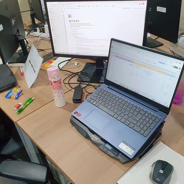 가장 큰 매력은 업무에 몰입이 잘된다는 점 같습니다. ‘학독만’에서 사용하는 여러가지 회계 관련 스프레드시트들의 함수식을 수정하고 수치를 입력하는 일을 하고 있는데요, 기존의 스프레드시트를 사용이 조금 더 쉽고 편하도록 바꾸고 있습니다. 그런데 이게 함수식이나 숫자 하나만 틀려도 크게 영향을 미치는 작업이라서, 일을 할 때는 항상 몰입하고, 집중을 하기 위해 노력하고 있습니다. 항상 집중해서 일을 하다 보니 시간도 빨리 가고, 그러다 보니 퇴근도 빨리하는 것 같은 느낌이 드네요.