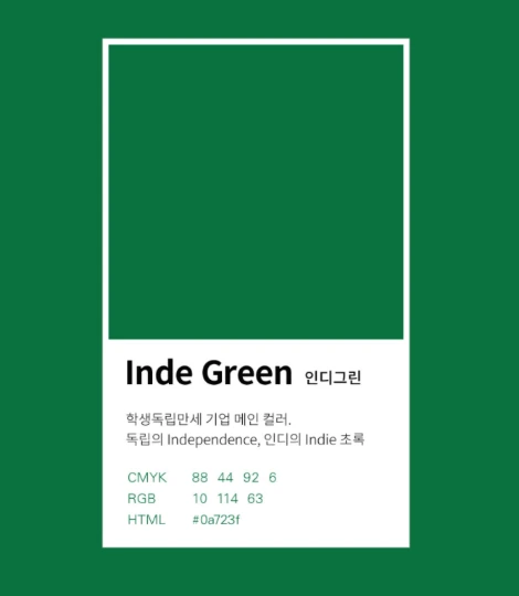 이후 컬러 브랜딩을 위해 사내에서 컬러 이름 공모를 진행했습니다. 학생이 스스로 경제적 능력을 갖추었을 때 자기자신의 교육비를 스스로 부담한다는 ‘독립적’이고 ‘주체적인’ 성격을 가지는 서비스라는 점에서 ‘Independence(독립적인)’와, ‘Green(초록색)’을 합해 ‘Inde-Green(인디그린)’이 탄생하게 되었죠.
