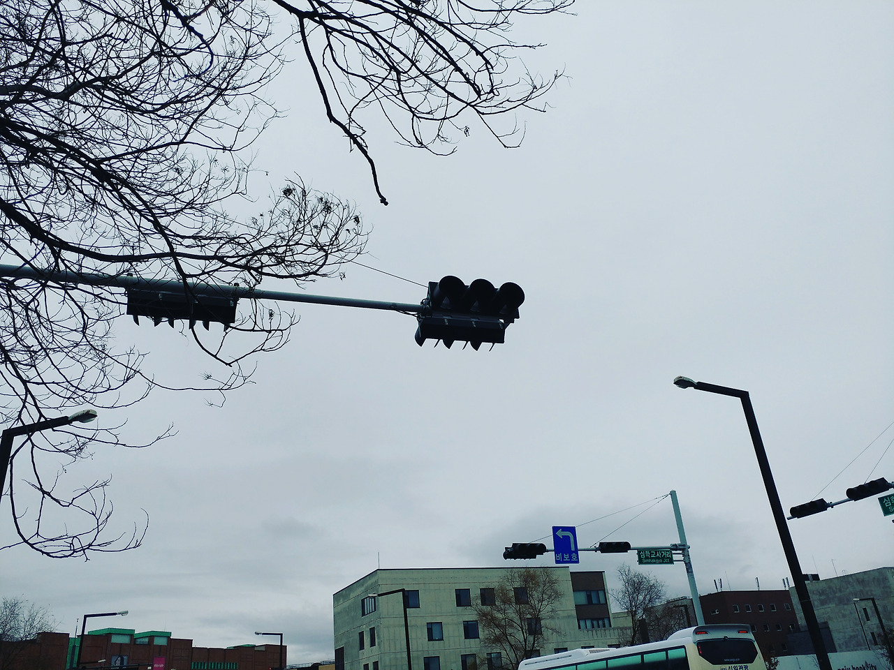 횡단보도 앞에 섰다. 신호가 없었다. 빨간불도 초록불도, 하다 못해 깜빡깜빡 점멸하는 노란불조차도 없었다.