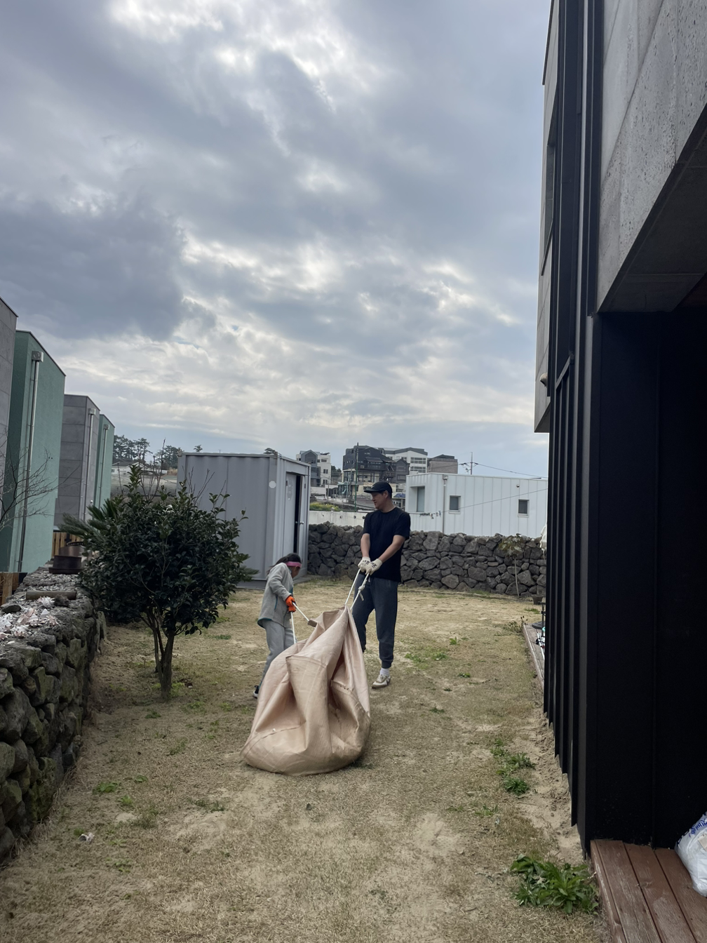 이웃 선생님께서 주택살이 초자인 우리를 위해 보이지 않는 곳까지 정성으로 돌봐주신 덕에 평온한 마당을 누리며 살고 있다. 그 보답으로 한달살이로 집을 비우신 시간 동안 남편이 모래 2톤과 함께 봄맞이 정원관리를 시작해 버렸다. 비와 바람이 강한 환경 때문에 마당의 움푹 들어간 곳곳을 채우고 돌담과 데크 사이의 빈 공간들을 메우기 위해서였다.