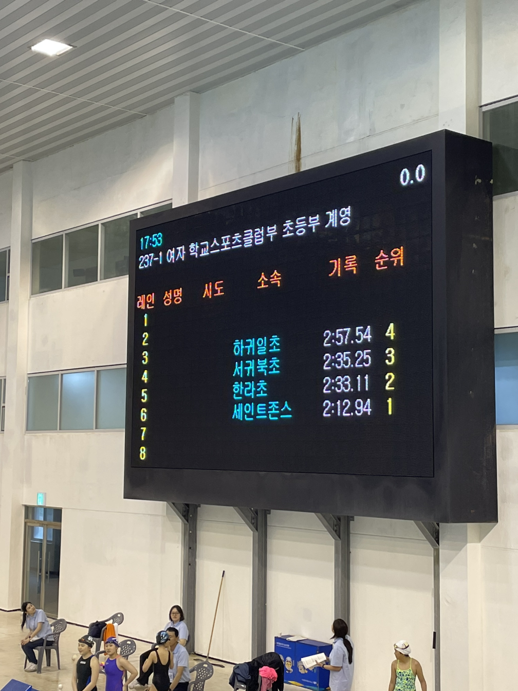 나와 남편, 첫째가 모두 출전했고 자유형 기록도 단축하는 좋은 성과를 남겼다. 지난번 출전했던 클럽대항 수애기배에서는 배영, 평영을 나가는 바람에 자유형 공식기록은 없지만 계영 때 43초를 기록했었다. 이번에는 2초 줄인 41초.