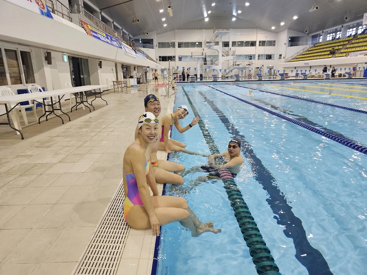 대회 전날 우리 수영선생님으로부터 연락이 왔다. 단체전에 나가기로 한 언니가 허리부상을 입어 못 뛰게 되었으니 나보고 계영주자로 뛰어달라는 전화였다. 나는 올 것이 왔구나! 생각하며 부담을 안고 대회장으로 갔다. 혼계영(평영)에 계영까지 뛰게 될 줄이야..
