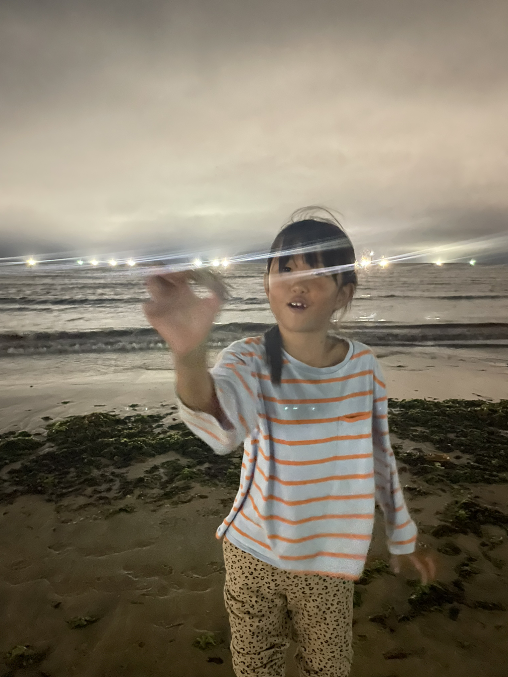 해무 가득한 날 아침 바다수영크루들과 걸었고 또 다른 날은 저녁 식사 후 가족과 걸었다. 안개 자욱한 아침바다는 영화 ‘컨택트’가 떠오르며 앞이 보이지 않는 바다 끝에서 뭔가가 나올 것 같은 분위기가 신비로웠고 저녁 바다는 한치배들의 조명이 달빛처럼 빛나 손잡고 나란히 걷는 식구들 얼굴을 비춰주었다.