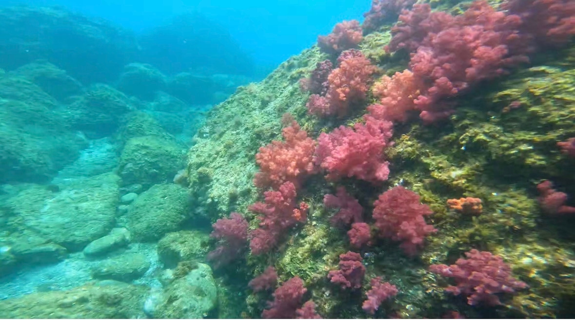우리는 경주에 나설 채비를 했다. 체온을 유지시켜 주고 해파리로부터 몸을 보호해 줄 전신슈트와 마스크와 스노클, 그리고 조류에 대비한 롱핀을 챙겨 용감하게 입수를 했다. 빠른 적응을 위해 슈트 안으로 물을 넣고 물속으로 머리를 넣어 맑은 바다를 보는 순간, ‘오늘은 하늘이 내려준 날이구나!’를 직감했다. 너무나 깨끗한 시야에 보랏빛 산호는 몽글몽글 솜사탕처럼 흔들리고 있었다.