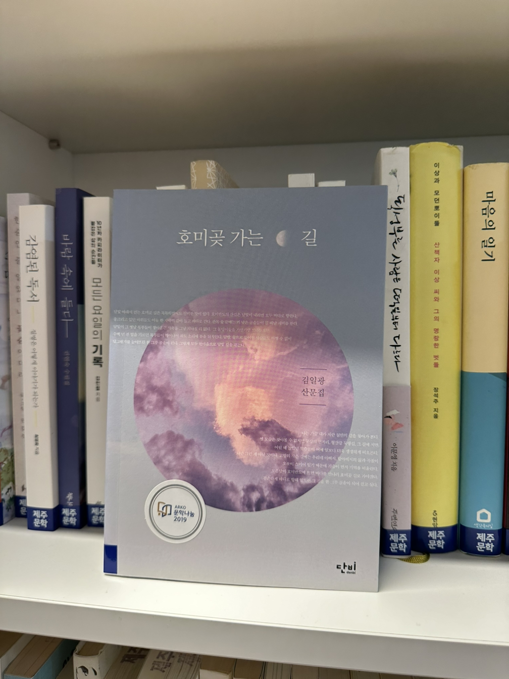 오랜만에 내 고향 포항에서 바다도 보고 단골식당에서 맛있는 회도 먹고 훌쩍 큰 조카 재롱에 시간이 후다닥 가버렸다. 다음 영덕여행을 기약하며… 글을 마무리하려고 하는 지금 제주문학관 책장에서 ‘호미곶 가는 길’이라는 책을 우연히 찾았다. 읽어보면서 고향에 대한 영감을 한번 얻어볼까?