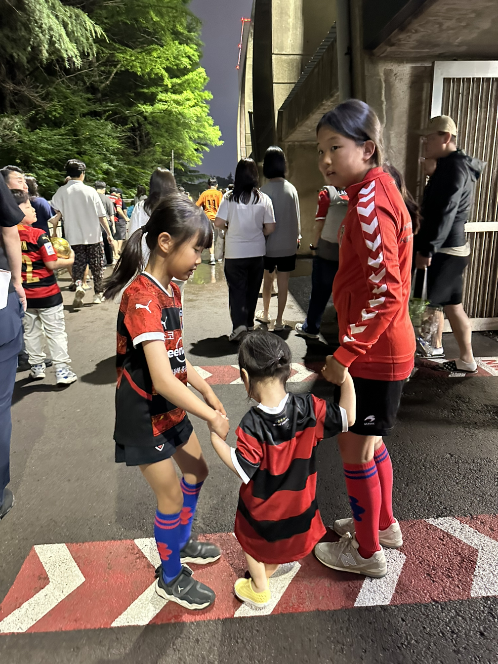 나도 어릴 때 축구 경기 보러 많이 다녔었지만 그때의 열기만큼 팬들의 응원 열기는 엄청났다. 부모님 따라 경기장에 오면 동네 사람들 다 모여 인사하고 친구들도 만나고 흥분됐던 시간들이 생각난다. 그때 엄마 나이만큼 자란 딸들과 두 손 잡고 함께 와서 감회가 새로웠다.