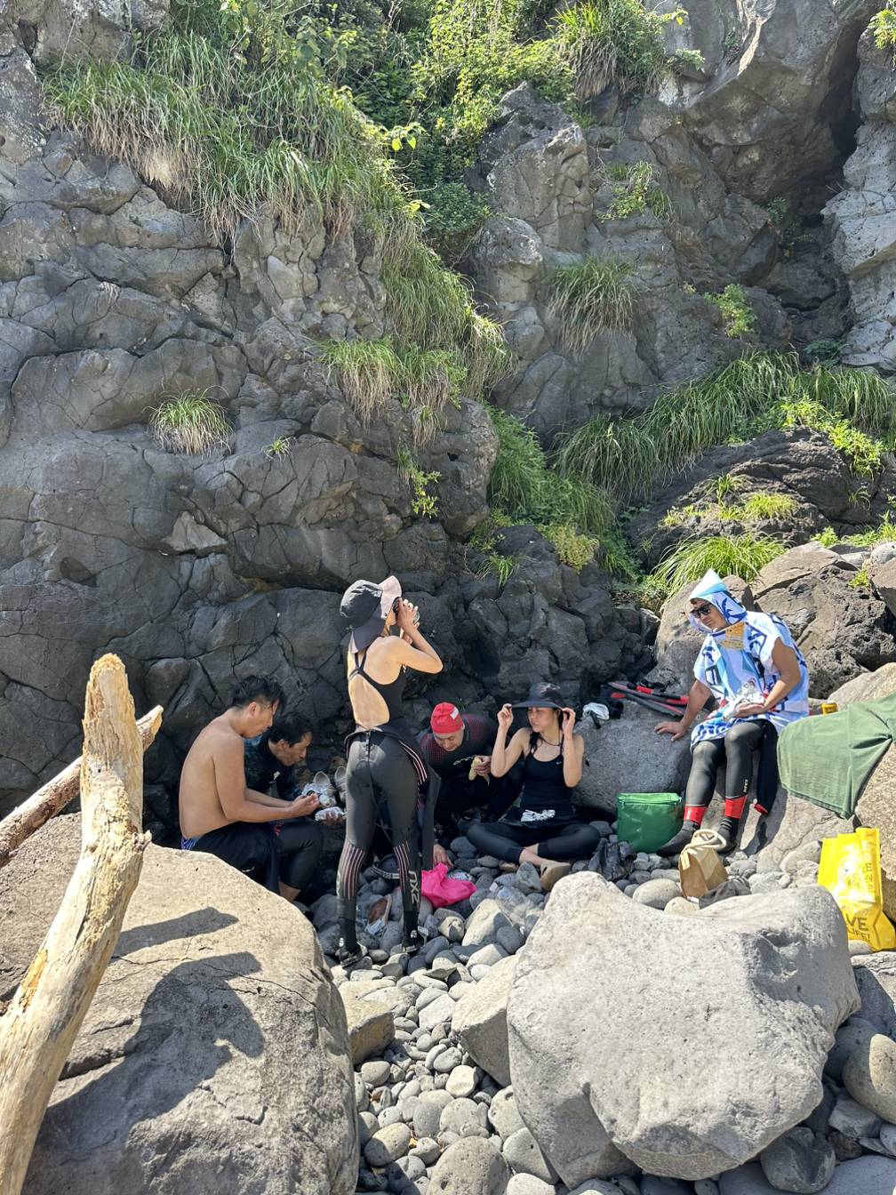 출수 후 그늘에 자리를 잡아 각자 챙겨 온 음식들을 펼쳐 놓고 허기를 달랬다. 처음 보는 다른 일행들에게도 바다를 무사히 다녀온 안도감 같은 것이 느껴졌고 너그러워진 마음에 그늘과 옥수수도 맘껏 나눴다.