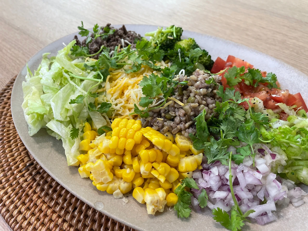신선한 제주산 돼지고기가 마트에 갈 때마다 유혹하기에 일부러라도 샐러드를 자주 해 먹으려고 한다. 육류가 들어가긴 하지만 기름기는 적게, 채소는 많이, 현미밥 또는 쌀국수를 가미하면 아이들도 한 그릇씩 뚝딱 비우는 든든한 한 끼가 된다. 동남아식 비프샐러드, 치킨누들샐러드도 단골메뉴이지만 초당옥수수 시즌에는 옥수수를 듬뿍 넣은 멕시칸 식 부리또볼이 우리 집 식탁에 자주 등장하게 된다.