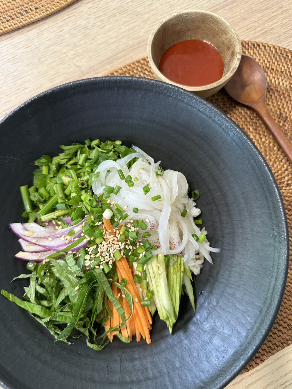 올해 한치가 많이 잡히지 않아 ‘금치’로 불리는데 한치를 사랑하는 둘째를 위해 큰맘 먹고 마트에서 한치회 한팩을 구입했다. 다른 채소들은 취향대로 넣지만 오이와 깻잎, 그리고 미나리는 꼭 넣어야 맛있는 한치 덮밥이 완성된다.