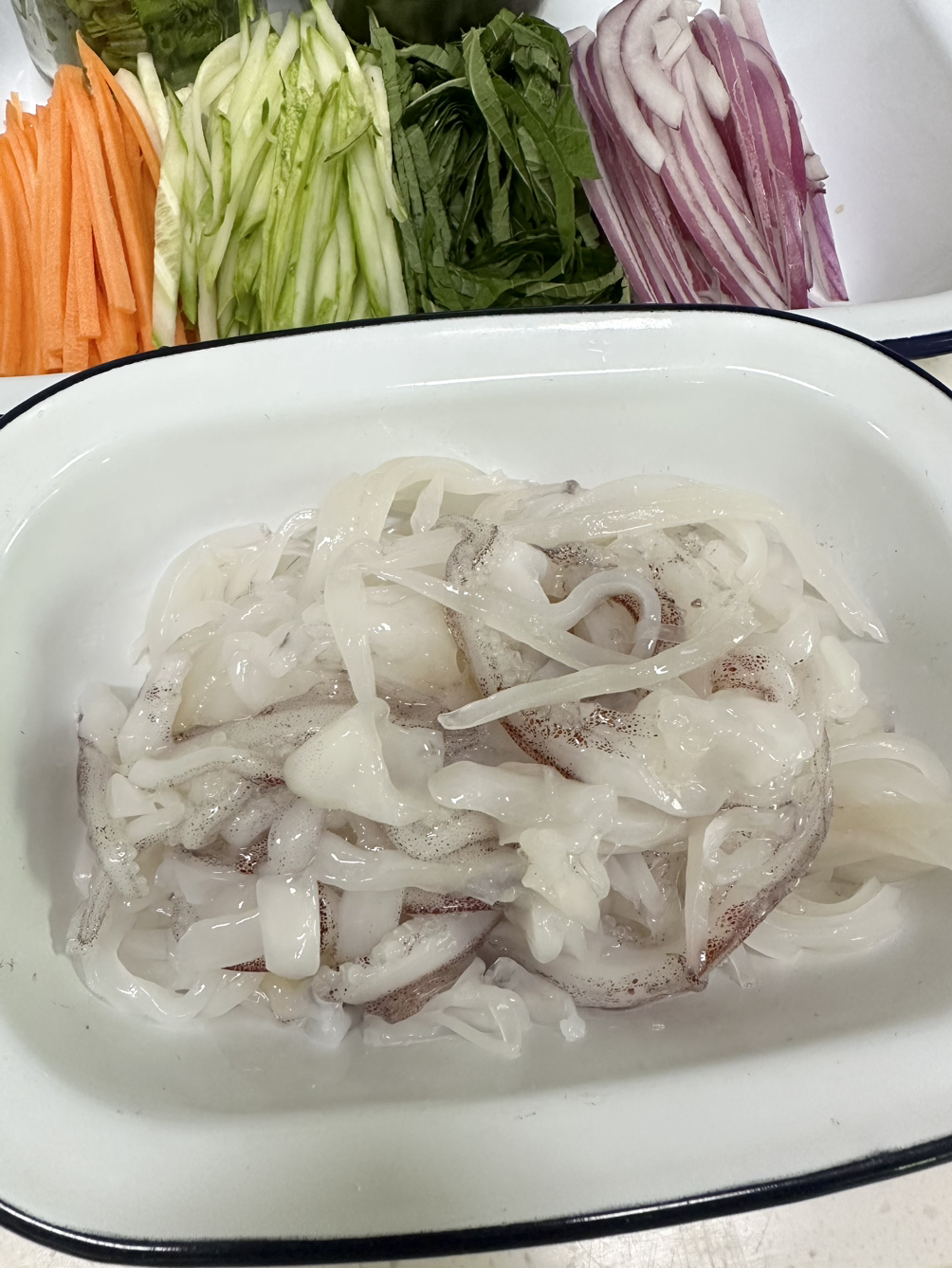 2. 한치도 먹기 좋게 반 정도 잘라 놓는다.