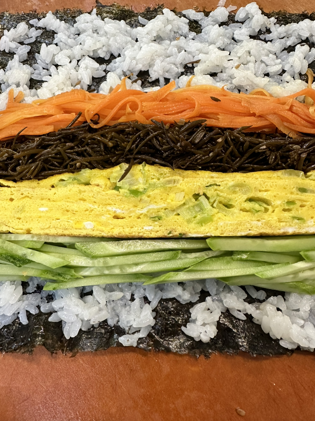 6. 톳조림을 듬뿍 넣어 김밥을 맛있게 싼다.