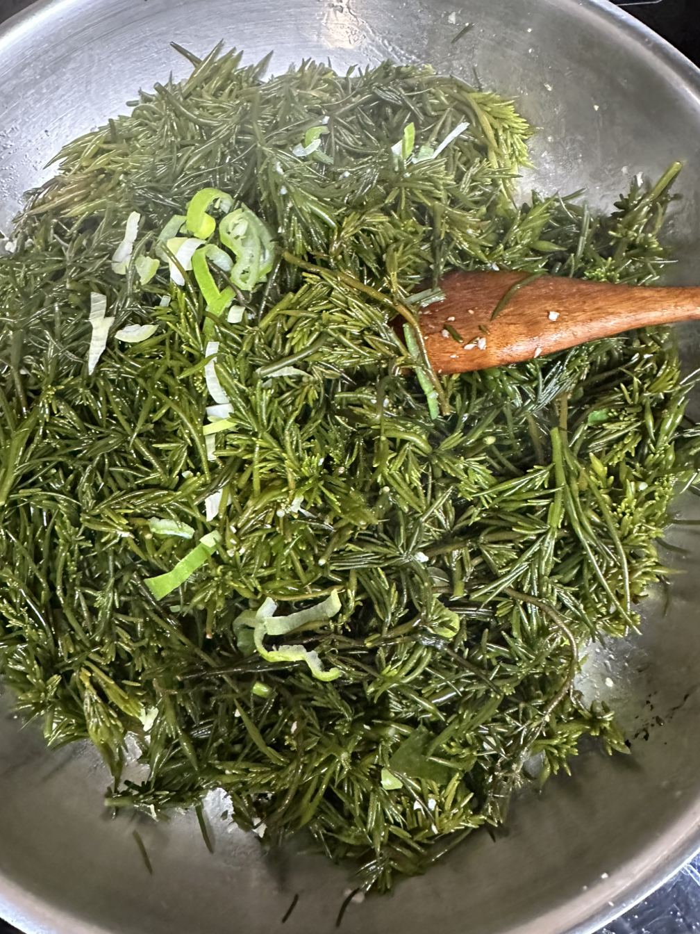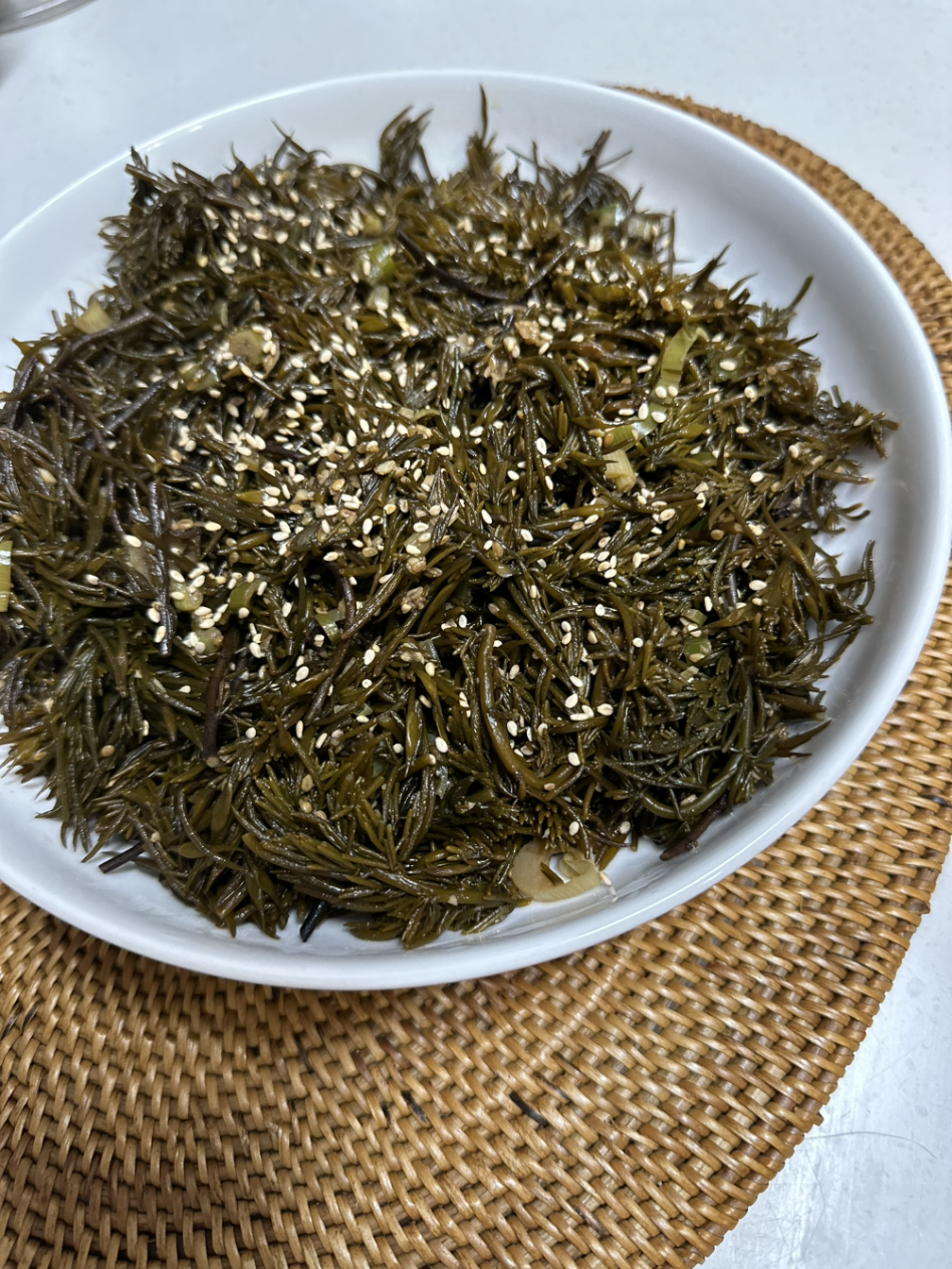 한번 데쳐서 먹기 좋은 크기로 자른 후 간장과 매실을 넣고 중불에서 볶다가 참기름으로 마무리해서 졸여낸 톳조림은 오독오독 씹히는 맛과 바다향이 없어진 입맛도 살려준다.