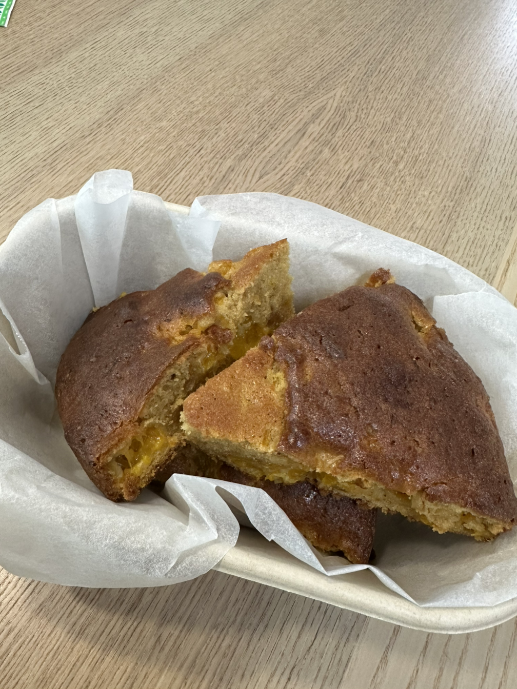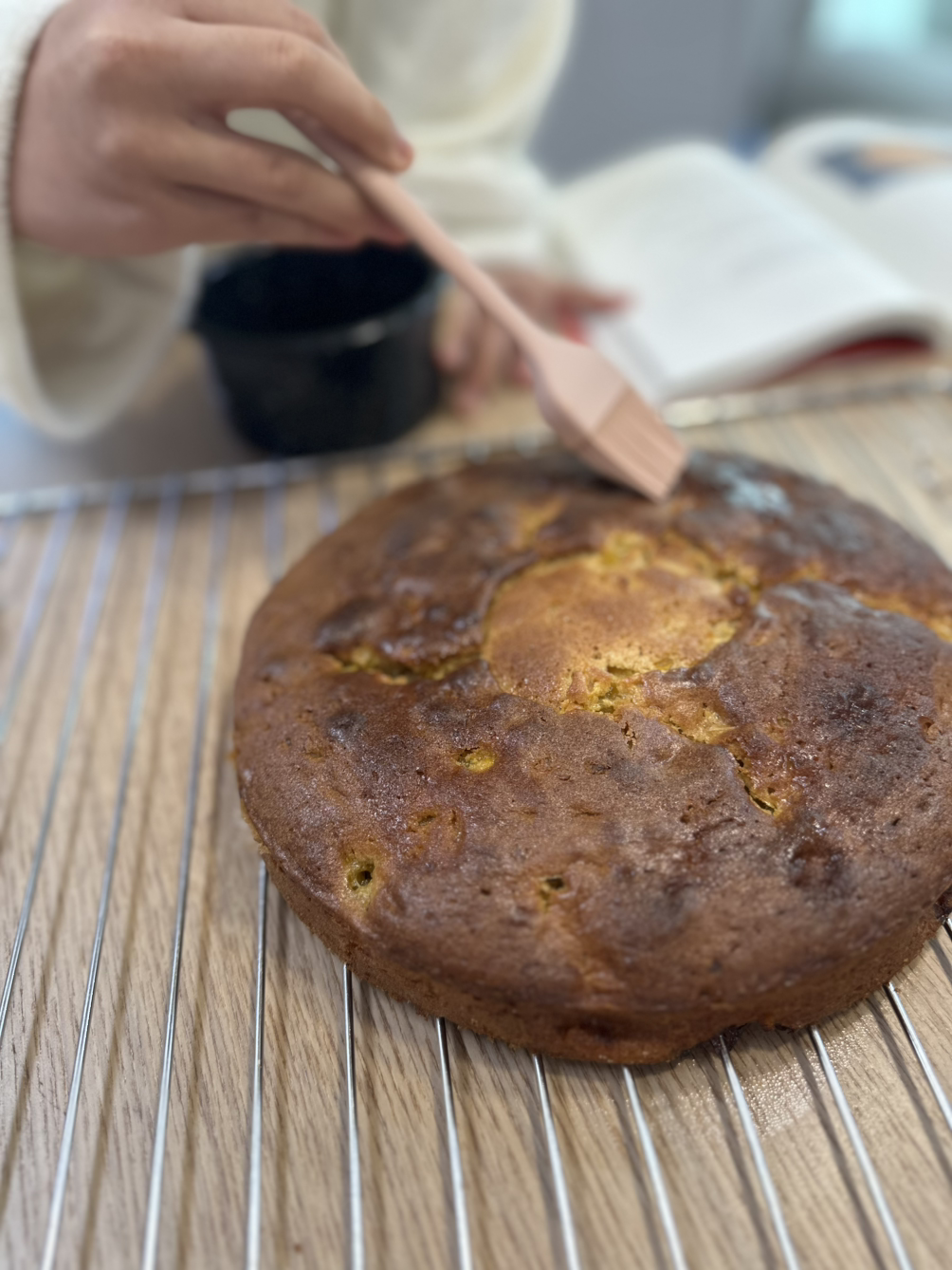 노릇노릇 잘 구워진 케이크를 한 김 식혀 일단 우리 둘이 맛을 보았다. 유튜브나 요리책을 참고해 처음 해보는 레시피는 나만의 레시피로 완성되기까지 여러 번의 시행착오가 필요하다. 맛보자마자 우리 둘 다 눈이 동그래질 만큼 맛있어서 얼른 두 조각을 이웃께 갖다 드리고 감기 걸린 친구에게 주고 싶다고 해 정성껏 포장을 했다.