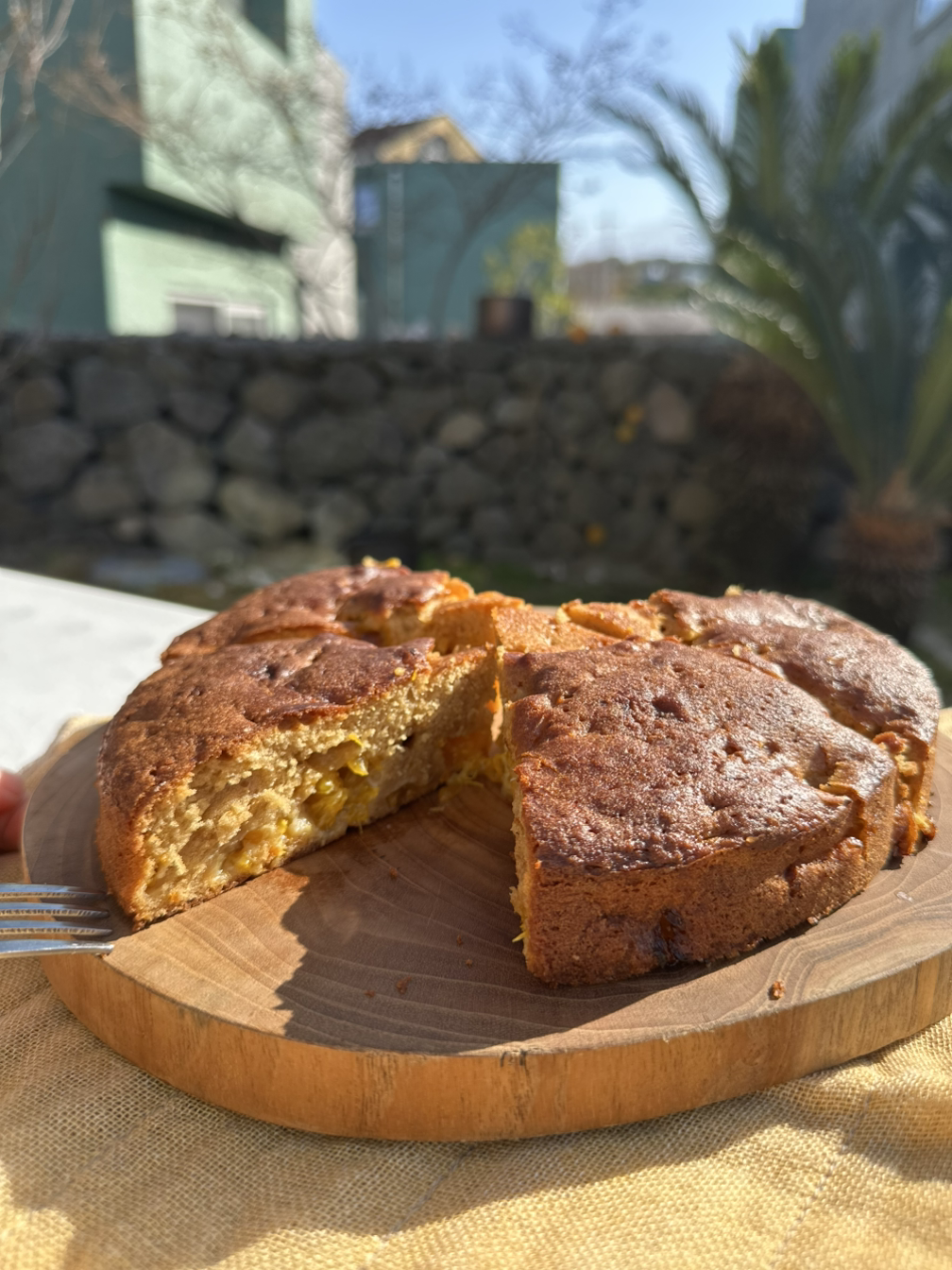 귤과육의 상큼함과 풍미 넘치는 버터향이 어우러져 온 집안이 고소한 온기로 가득 찼다. 딸과 마주 앉아 페퍼민트 차를 호호 불어가며 케이크 한 조각을 나눠먹으니 제주의 겨울바람도 반갑기만 하다.