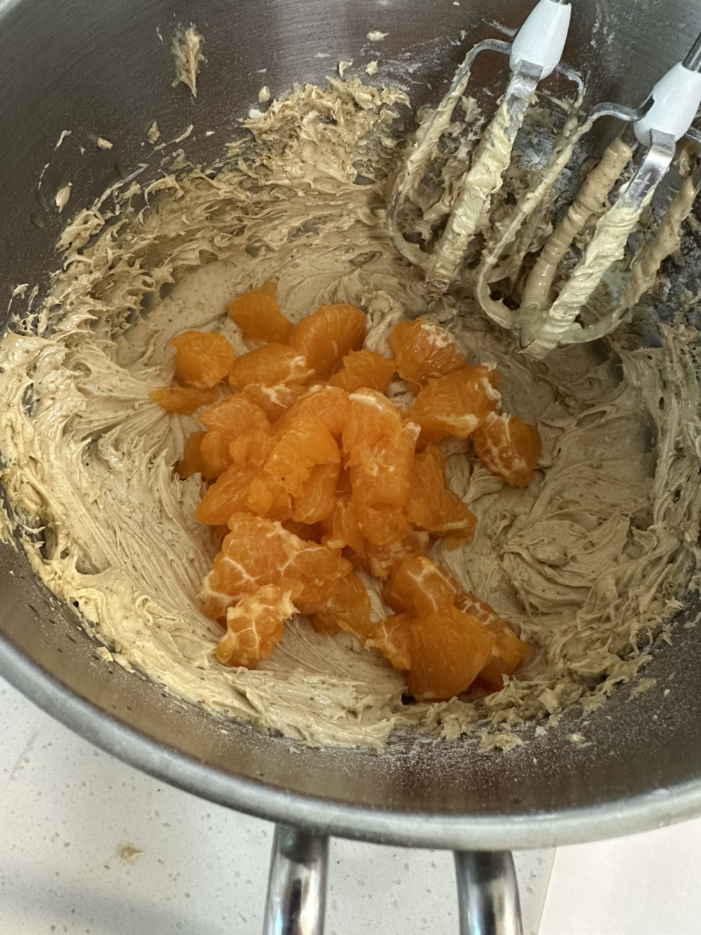 3. 귤 과육을 준비해 놓고 반죽에 함께 넣어 뭉개지지 않도록 살살 섞는다.