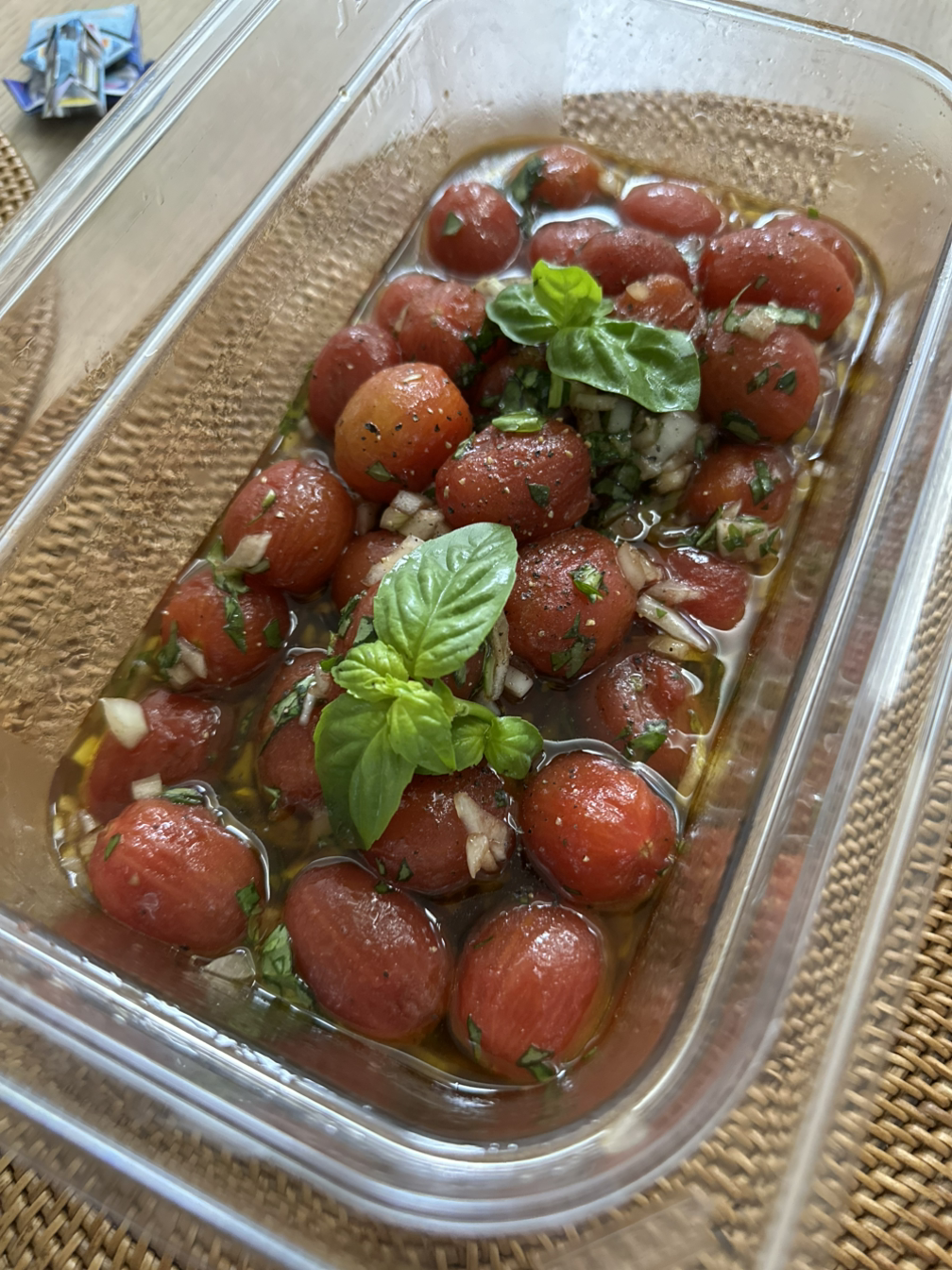 보통 한 번 만들 때 방울토마토 1kg 한 팩을 사서 넉넉히 만들어 놓는다. 바쁜 아침 샌드위치 또는 샐러드에 넣으면 근사한 한 끼가 완성된다.