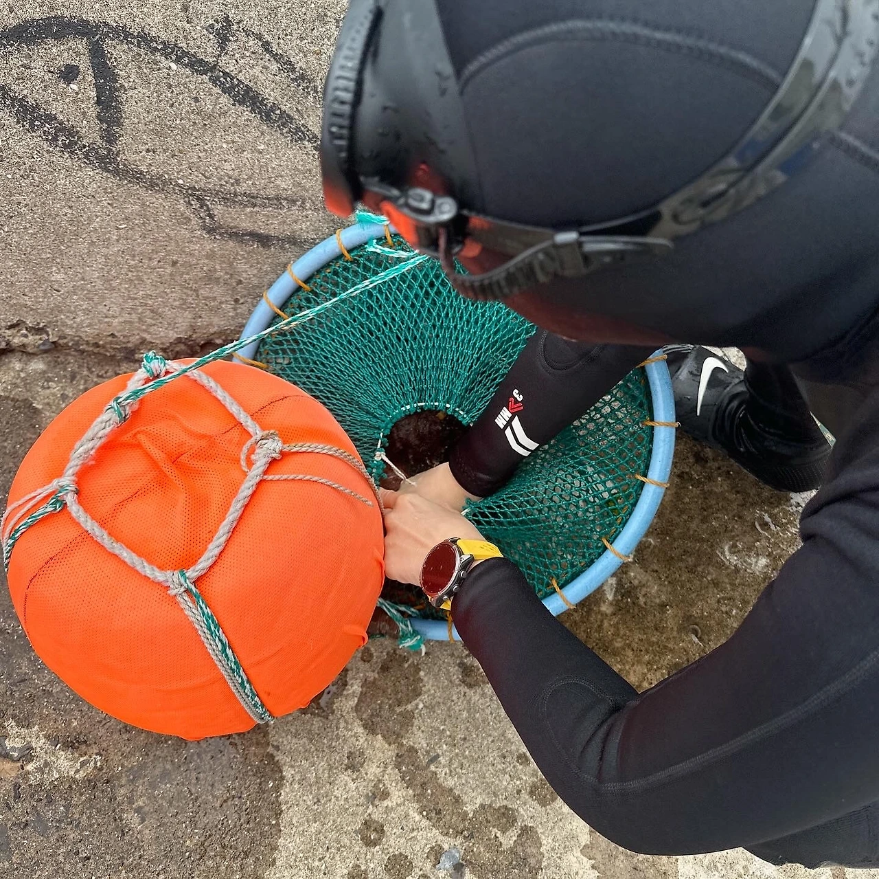 초보신입생들은 바다에서 건진 거라면 다 좋아 보여 테왁에 막 넣었더니 그 모습이 웃겼나 보다.