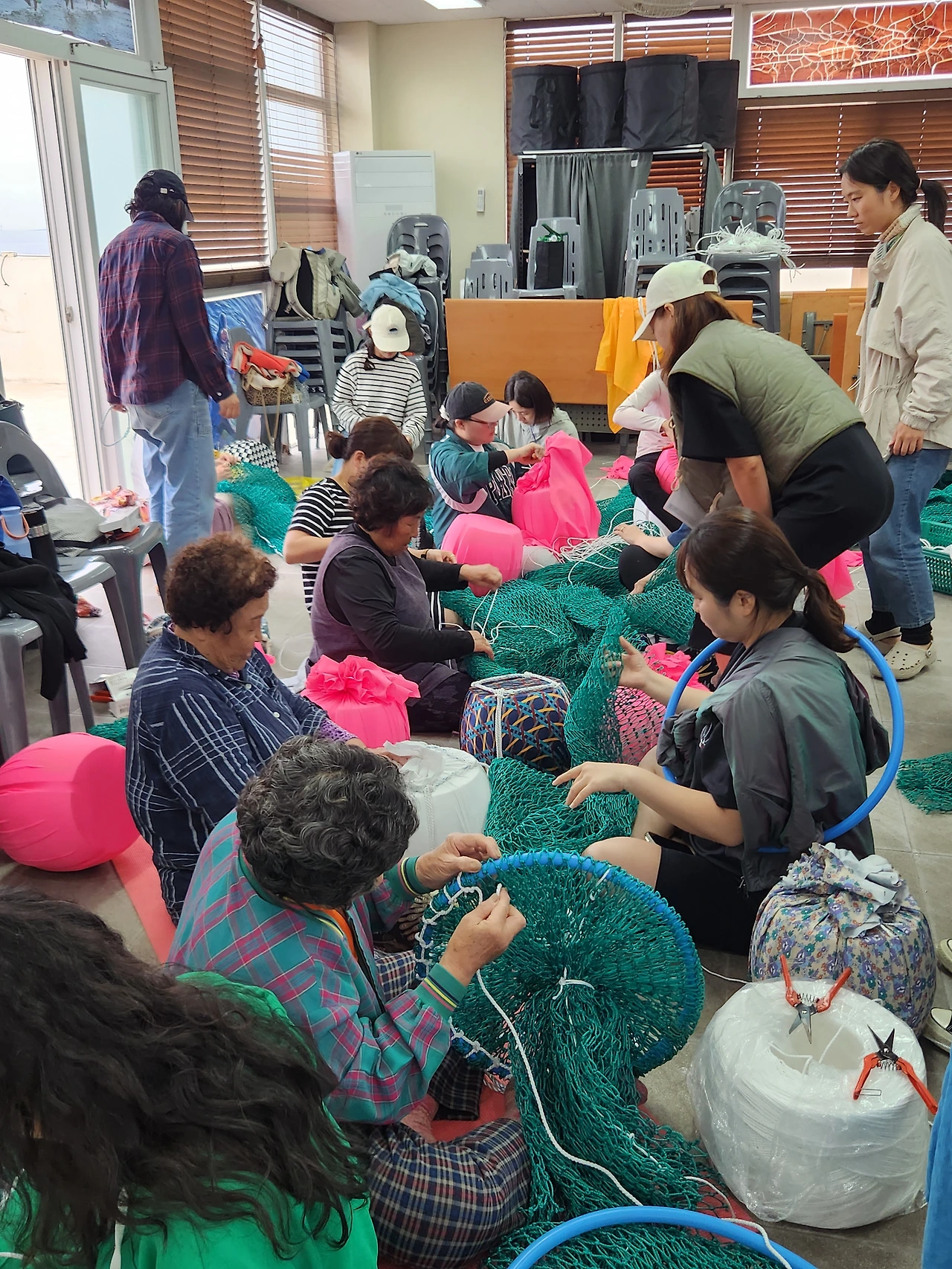 바다 날씨가 좋지 않아 실내에서 해녀삼촌들과 대담 그리고 테왁 만들기 수업을 했다. 적게는 10년, 길게는 50년 경력의 해녀삼촌들, 수줍게 들어오셨지만 믹스커피 한 잔에 이야기보따리가 풀렸다. 긴 세월 바다에서 일어난 일들을 세세히 말씀해 주시며 새내기해녀들의 질문에 성의껏 답해 주셨다.