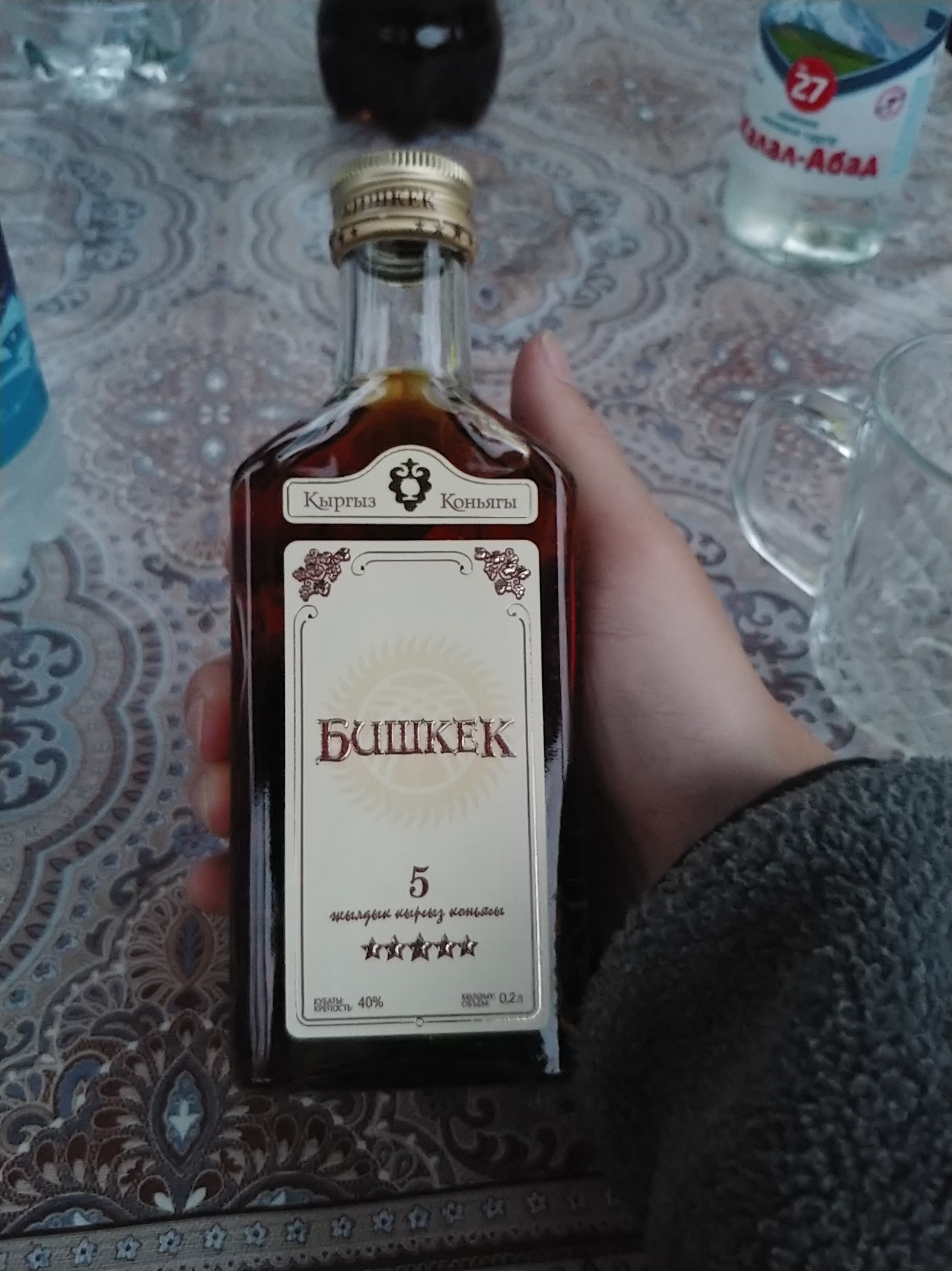 아루가 아는 식당으로 저녁을 먹으러 갔다. 편안한 소파가 많아서 좋았다. 앉아서 저녁을 먹고 술도 먹고 디저트까지 먹고 놀았다. 뭔가 아쉬워서 호스텔로 돌아가는 길에 마트에 살짝 들러서 꼬냑과 초콜릿을 샀다. 아루가 비슈케크에서 꼭 먹어봐야 한다면서 꼬냑을 추천했다. 200ml 작은 병에 3천원 정도로 아주 싸다. 얼음이 없어서 차가운 생수를 한 병 사서 아유미와 술을 나눠마셨다. 잠이 잘 왔다.
