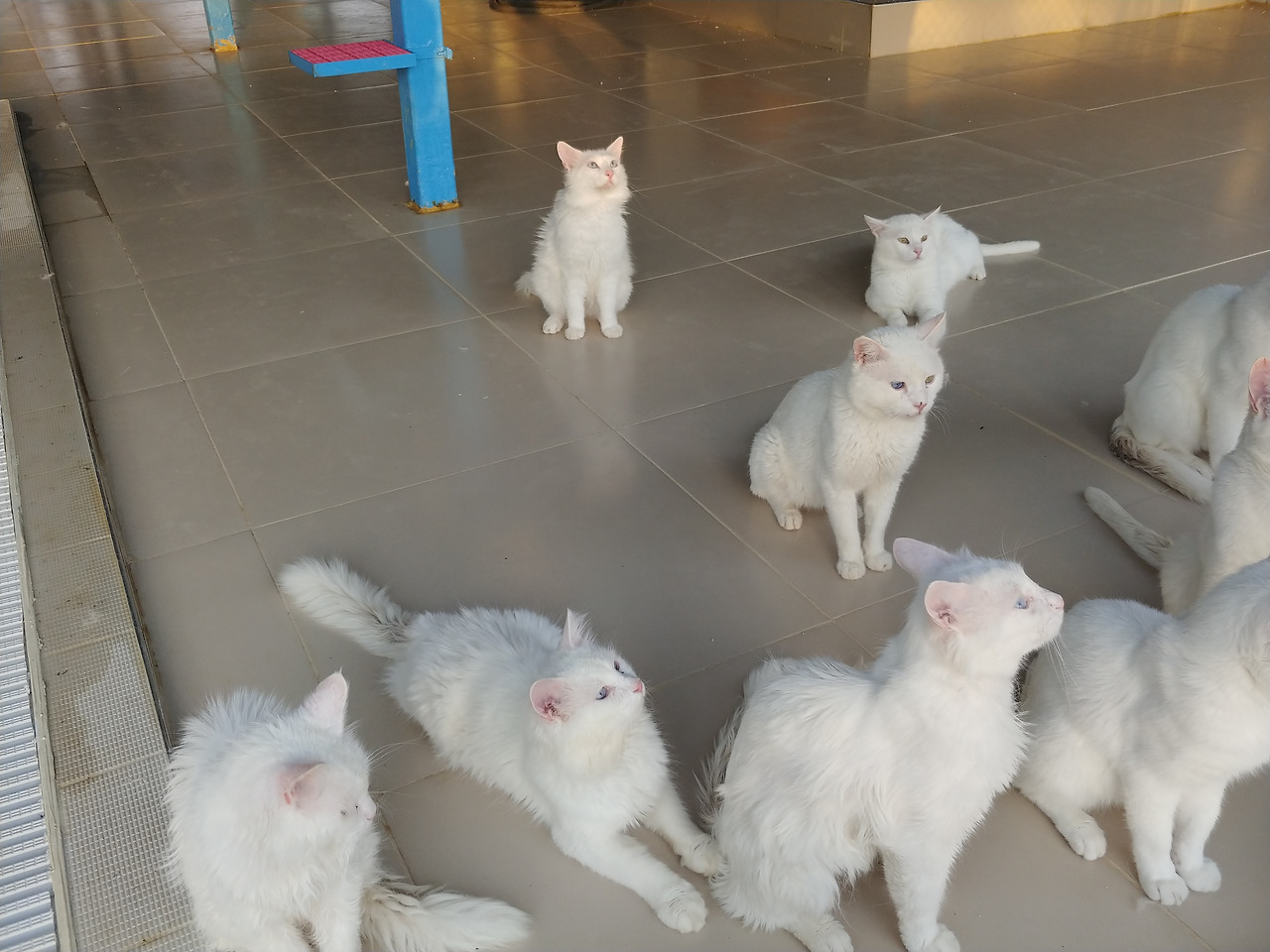 '반 케디 에비'(반 고양이 집)라는 내 말에 그 친구들은 알겠다는 듯 반 시내에 도착해 돌무쉬 정류장에 세워줬다. 우리는 고맙다는 말을 남기고 차에서 내려 돌무쉬로 갈아탔다. 터키쉬 앙고라의 한 종류인 반 고양이는 보호종이라 반 바깥으로 외부 반출이 금지돼있고, 민간에서도 키울 수가 없다. 그래서 대학에서 운영하는 보호소에서만 볼 수 있다. 하얀 털에 오드아이를 가진 종으로 묘사되는데, 다 그런 건 아니고, 특정 확률로 호박색과 푸른색의 눈을 갖는다고 한다.