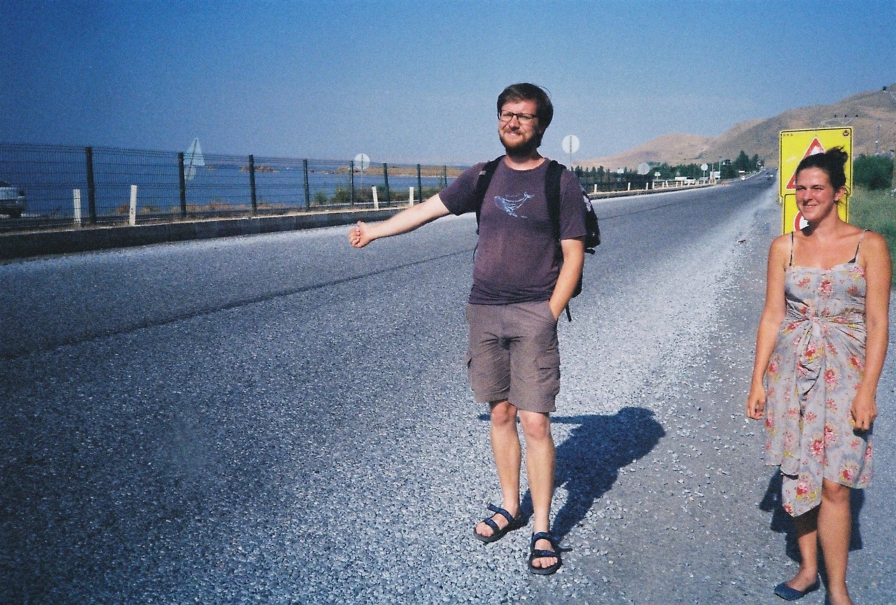 나와 마르틴이 교대로 길가에 서서 손을 뻗고 차를 세우려고 했다. 차가 꽤 자주 지나다녀서 기대를 걸어봤는데 다들 우리를 못 본 듯 지나칠 뿐이었다. 그러기를 30분, 여기서 포기하고 다시 돌무쉬를 타야 하나 고민하던 중 록음악을 시끄럽게 틀고 지나가던 빛바랜 빨간색의 시트로앵 한 대가 멈춰 섰다. 히치하이킹을 할 때 내 앞에 멈출 것 같은 차는 뭔가 느낌이 온다. '반'이라는 우리의 짧은 한 마디에 그들은 흔쾌히 뒷자리를 내어주었다.