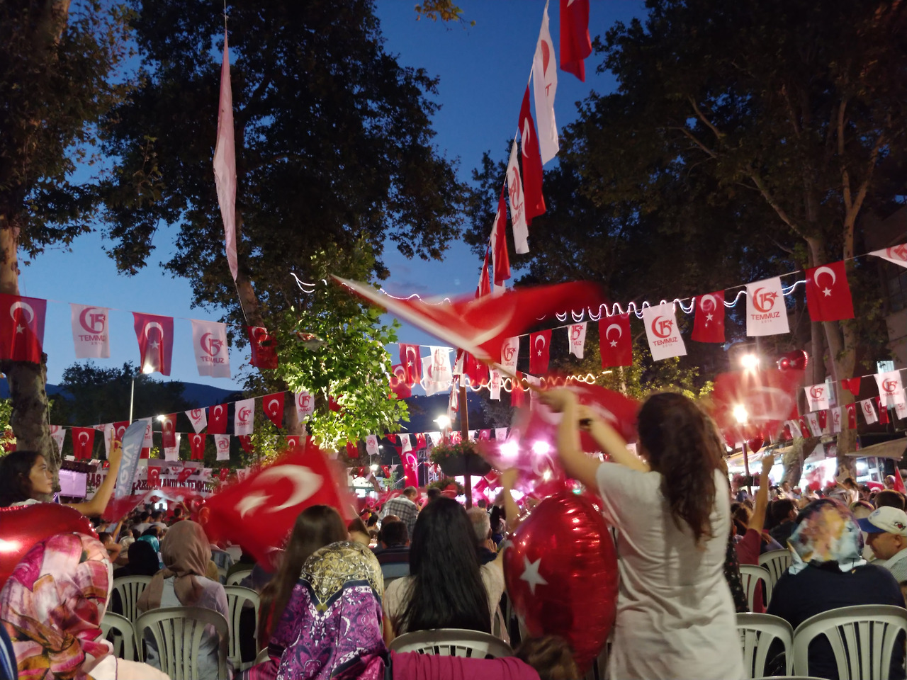 하지만 내 생각에 집회는 조금 우려되는 부분이 있었다. 터키 대통령 에르도안은 터키의 초대 대통령 케말 아타튀르크가 만들어둔 정교분리의 세속주의 원칙에 살짝살짝 어긋나는 정책을 펼치고 있다. 특히 세속주의를 지지하는 군부가 일으킨 쿠데타가 실패한 이후 법원과 행정기구, 학교 등 공공기관에서까지 반대파를 숙청한 그는 1달 전 대선에서 다시 대통령에 당선되며 터키의 술탄이 되어가고 있다는 평가를 받고 있다. 그가 당장 샤리아 법률을 들고 나와 터키를 이란처럼 만들 것 같지는 않지만, 어쨌든 국가와 민족을 강조하면서 인기몰이를 하는 그는 오늘의 기념 집회에서도 그런 냄새를 강하게 풍겼다. 대형 스크린을 통해 그와 다른 정치인의 연설이 방송되고, 그것을 보기 위해 사람들이 잔뜩 모인 광장에는 붉은 터키의 깃발이 가득 휘날리고 있었다. 그리고 중간중간 터키의 전신인 오스만 제국의 근위대였던 예니체리의 행진곡이 스피커를 통해 울려 퍼지며 사람들을 묘하게 고조시켰다.