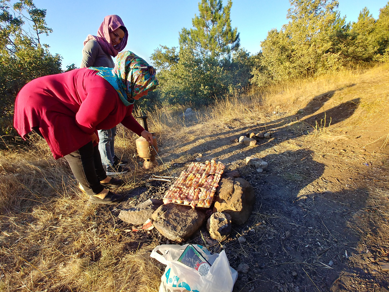 이스마엘이 운전하는 차를 타고 도착한 공원은 산 중턱에 있었다. 세마베르라는 차를 끓이는 화로에 장작을 넣어 불을 때우고, 돌을 쌓아 화덕을 만들어 고기를 구웠다. 카흐라만마라쉬에서 메흐메드네 가족과 갔던 피크닉과 비슷했다. 우리가 도시에서 떨어진 펜션 같은 데서 고기와 술을 먹고 오는 것을 즐기듯, 터키인들도 이런 종류의 소풍을 좋아하는 것 같다. 하지만 바닥에 불을 피우고 뒷정리는 잘하지 않는지 여기저기 다녀간 사람들이 피운 모닥불의 흔적이 그대로 남아있었다. 흙이라도 덮어두지.