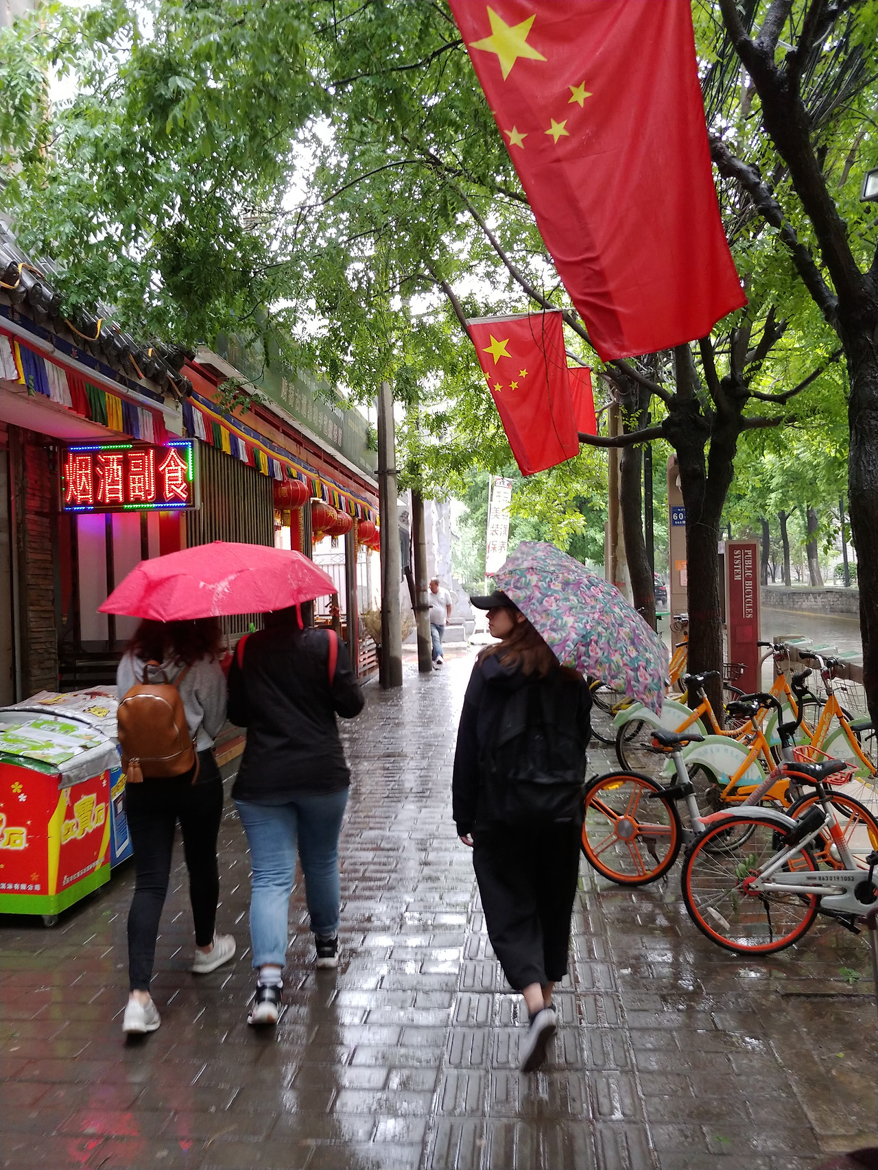 다시 호스텔로 돌아와 같은 방 일본인 친구 토시이까지 데리고 저녁을 먹으러 가기로 했다. 성 남서쪽의 회족 거리에 가는데 첸이 우리를 위해 자전거를 빌려줬다. 서울 자전거 따릉이처럼 어플로 코드를 받고, 코드를 입력하면 자전거 잠금이 열린다. 하지만 따릉이처럼 특정 장소에 주차돼있는 게 아니라, 아무 데나 자전거들이 뒹굴고 있다. 오랜만에 자전거를 타려니 중심이 잘 안 잡히는 기분이었다.