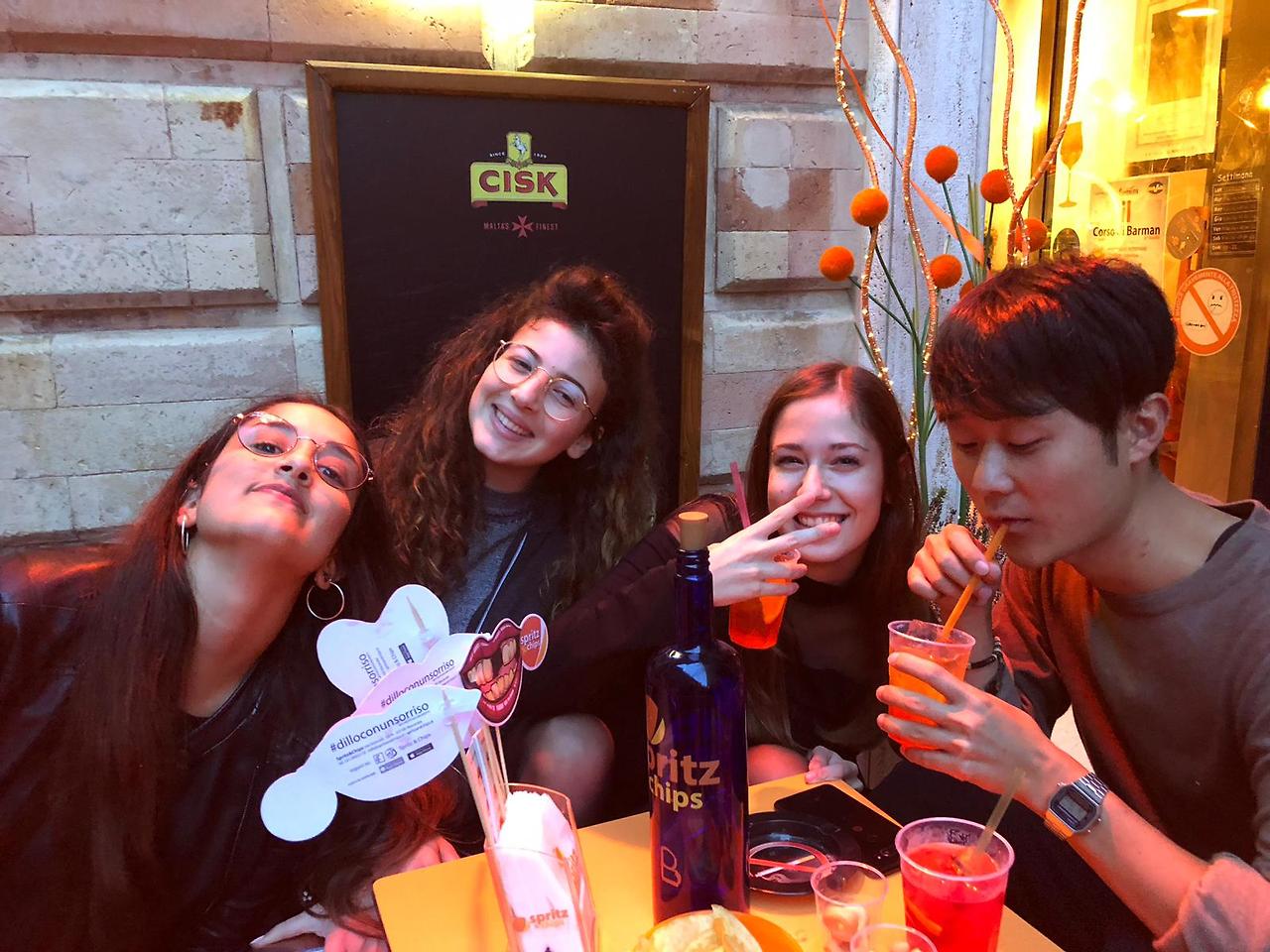 우리는 길가에 보이는 카페에 들어가 젤라또와 스프리츠를 주문했다. 마테오와 프란체스카는 아는 친구들이 많았다. 지나다니는 친구들이 하나둘 합류하더니 야외테이블 전체를 우리가 차지하고 앉았다.