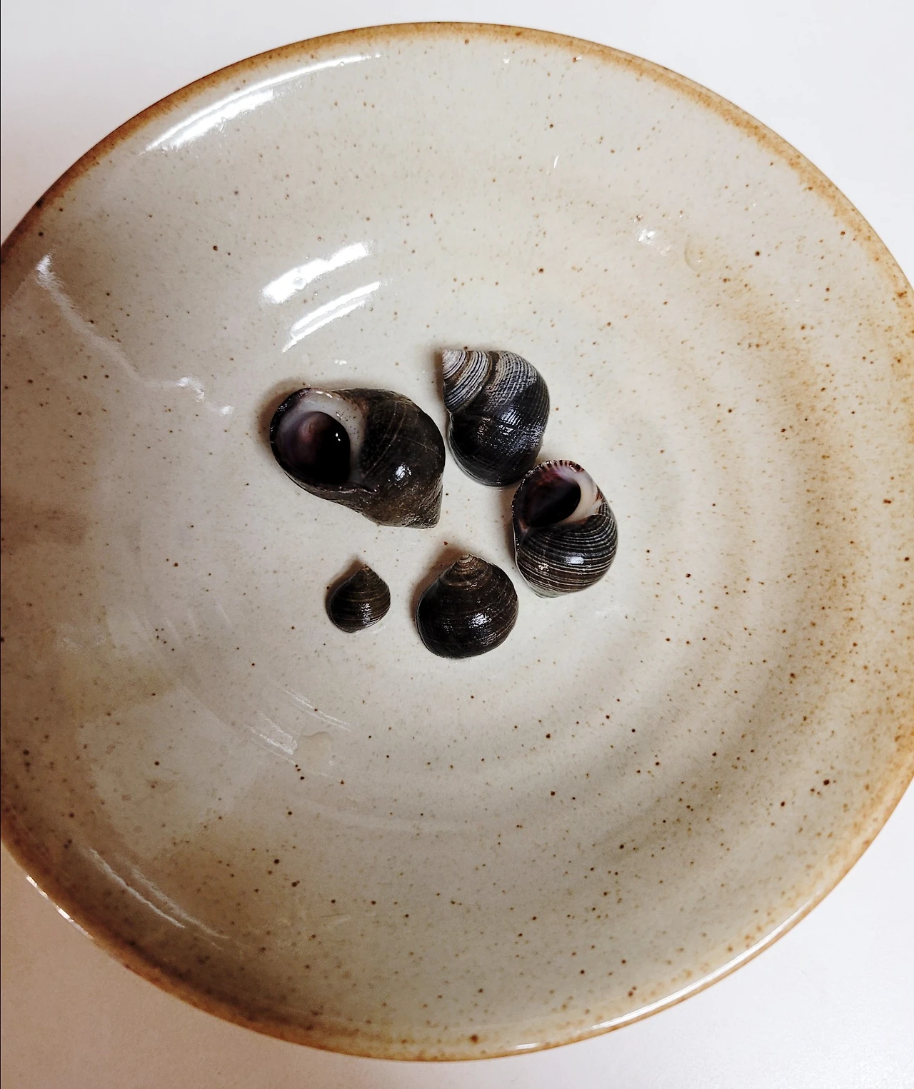 자세히 보면 하나는 돌멩이다. 고동을 닮은 게 신기했다. 그래서 고동과 함께 딸려왔나 보다.