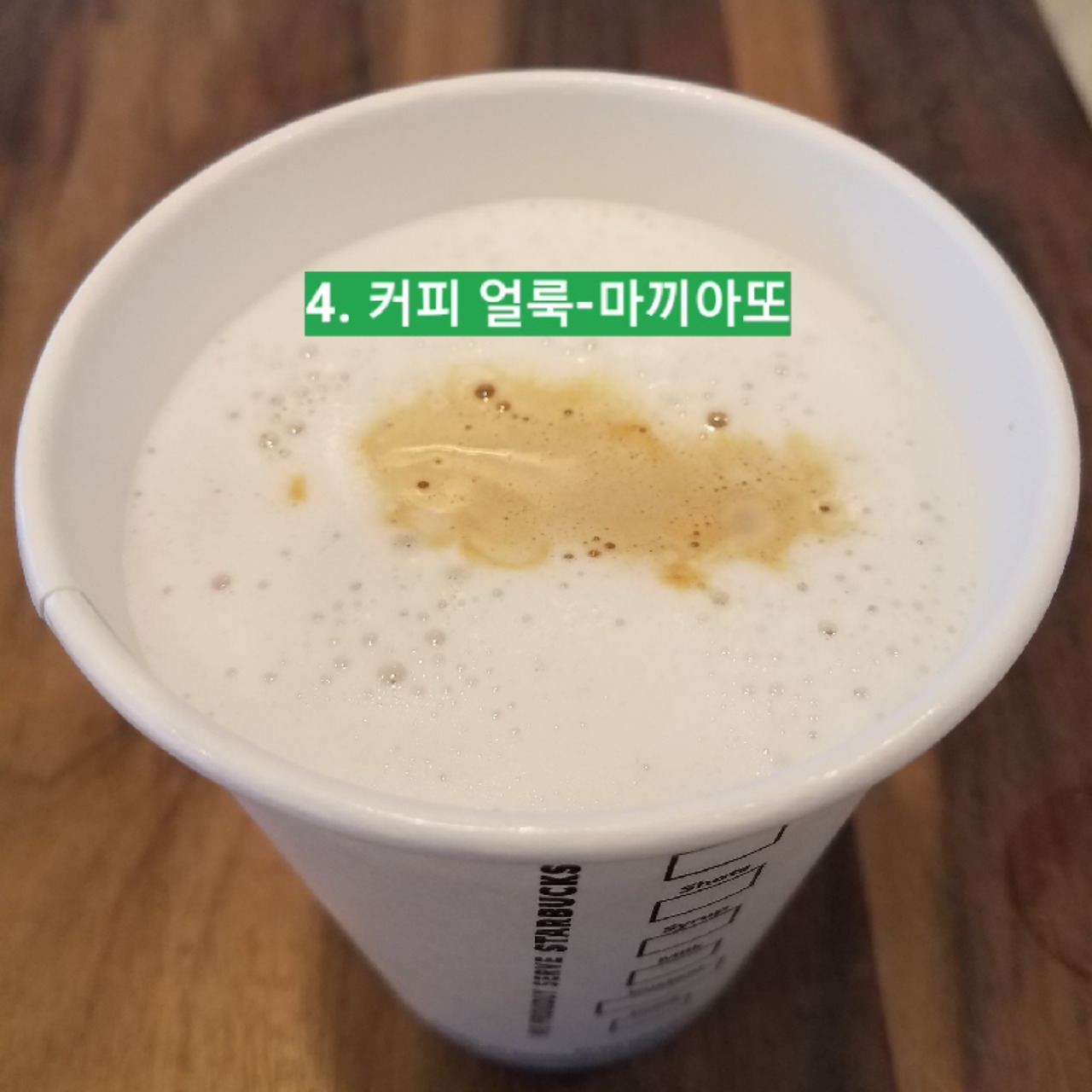4. 하얀 우유 거품 위에 커피 얼룩(Macchiato)이 남게 되는 것이다.