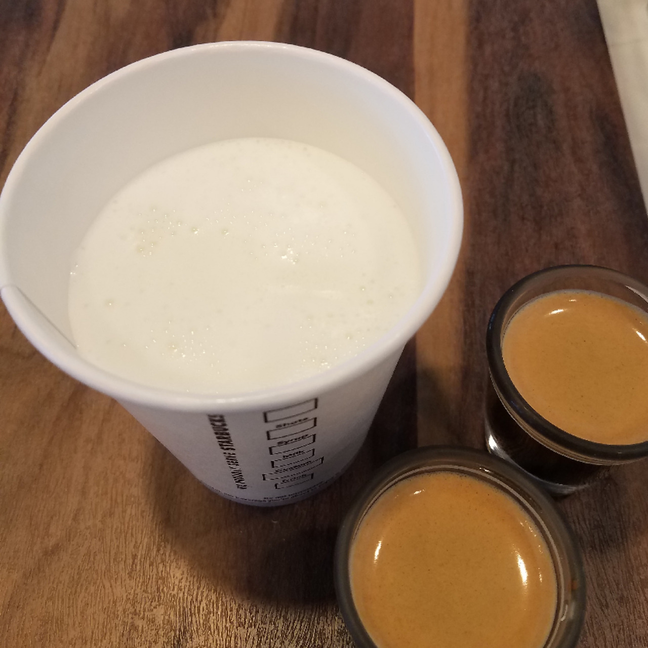 2. 포밍한 우유를 컵에 먼저 담는다.