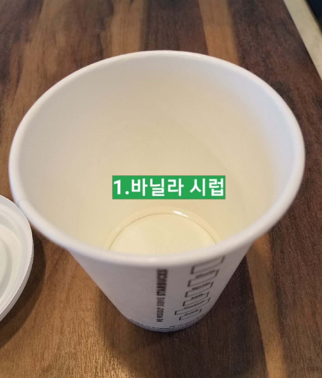 1. 바닐라 시럽을 넣고