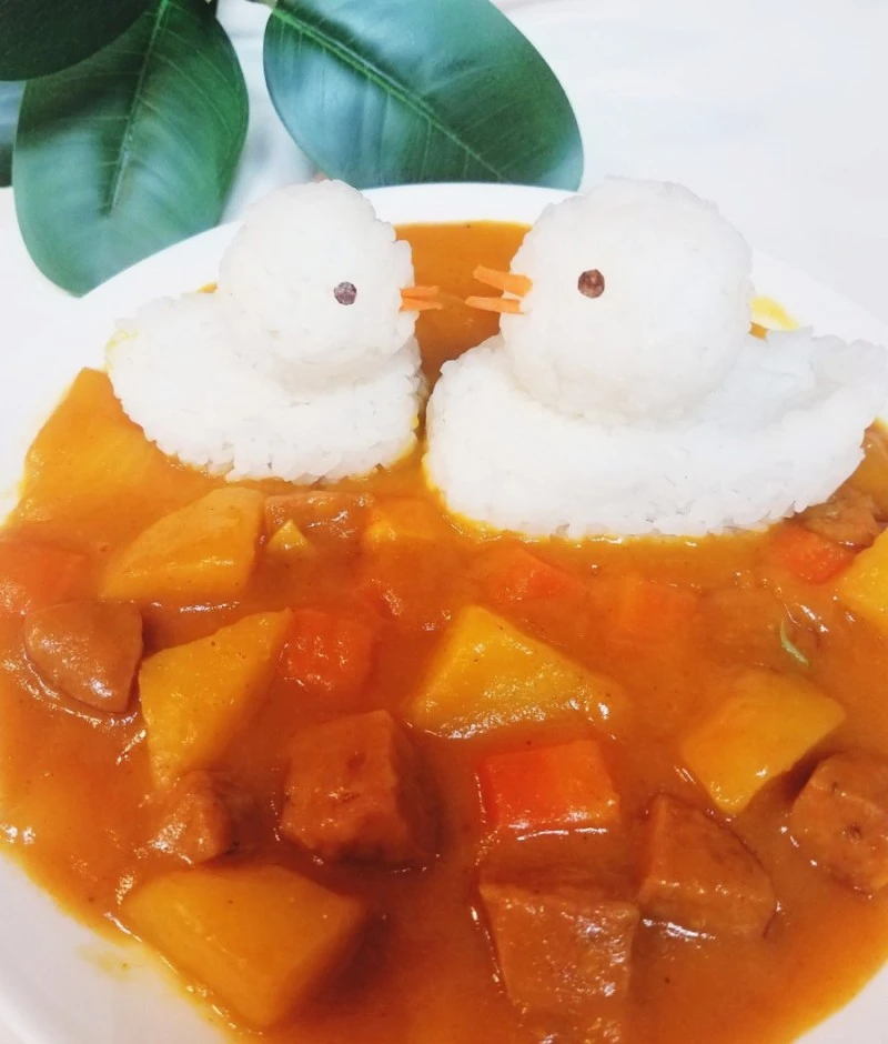이 작은 아이를 위해 오늘 나는 쌀을 씻었다. 감자, 양파, 당근을 썰었다. 카레 가루를 물에 풀어 개었다. 고기 대신 손질이 간단한 소시지를 넣고 한소끔 끓여내는 사이 라이스 덕을 만들었다. 만드는 법은 주먹밥처럼 밥을 한 손 가득 꽁꽁 뭉쳤다. 초밥 밥 모양처럼 길쭉하게 형태를 잡은 후 양끝을 살짝 구부려주니 오리 몸통이 되었다. 입은 당근으로 작게 긴 세모를 만들고, 눈은 마른 김을 사용했다.