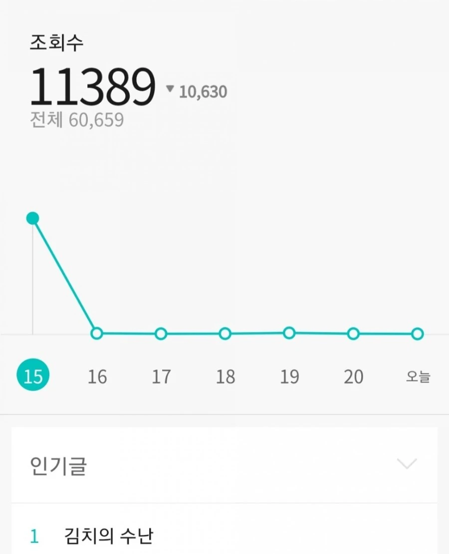 지난 4월에 블로그에 올린 <결혼기념일> 글을 제목을 바꾸어 <열무김치 담글 뻔한 결혼기념일>로 브런치에 올렸는데 카카오 탭에만 올라서 조회 수가 3일 동안 1천을 기록했다. 흥미로웠다. 보통은 다음과 카카오 탭에 같이 노출이 된다고 알고 있었기 때문이었다.