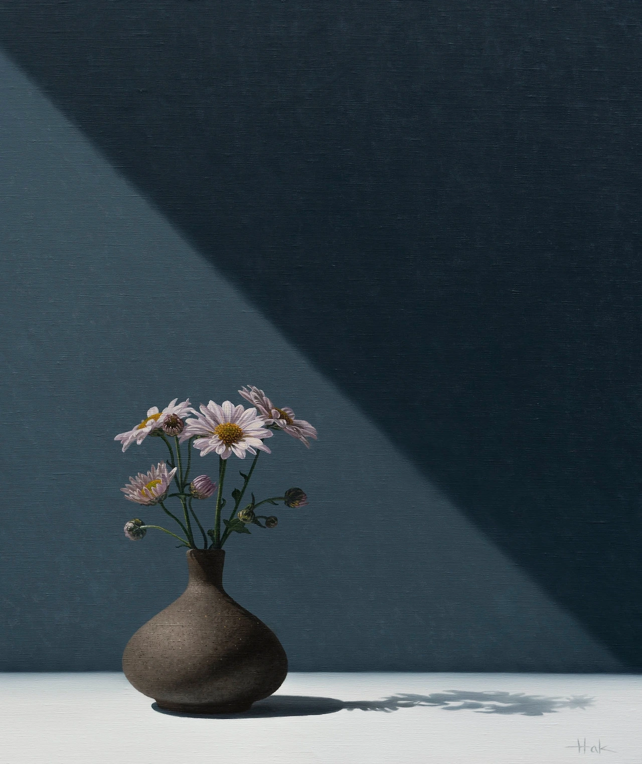 많은 분들이 그러하듯 저 역시 지난주 화요일부터 쉽게 잠들지 못하고 있어요. 불현듯 글을 쓰지 않은지 오래되었다는 생각이 들어 오랜만에 끄적여 봅니다. 저희 집에는 두 개의 다락방이 있어요. 집에 다락방이 있으면 저처럼 친구가 적고 집을 좋아하는 사람은 생활이 한층 즐거워집니다. 부수적인 공간이라 식구들의 왕래가 뜸하다 보니 혼자 시간을 보내기 좋기 때문이지요. 두 개의 다락방 중 하나는 완성한 그림과 새 캔버스, 계절이 바뀔 때마다 정리해서 보관하거나 평소에 잘 사용하지 않는 생활용품들로 가득 차있고 다른 하나는 작업실로 사용하고 있는데 제가 좋아하는 대부분의 물건들로 채워져 있어요. 책상과 이젤, 화탁, 책장, 레코드판을 넣어놓은 진열장과 CD선반, 빅터사의 작은 오디오, 몇 대의 기타와 앰프... 가끔은 내 나이만큼이나 오래된 데다 바스러지기 쉬운 시멘트 벽돌로 지어진 이 집의 다락방이 소유욕의 무게를 견디지 못하고 무너져 내릴까 봐 걱정이 되기도 합니다만 큰 머그잔에 커피를 담아 다락방으로 숨어든 다음 여러 가지 비생산적인 일들을 하다보면 걱정은 어느새 사라져 버리지요. 날씨 좋은 날 창을 열어놓으면 바람을 타고 낮잠이 몰려와 한두 시간은 정신을 못 차리기도 합니다. 해가 짧아지고 선선한 바람이 불기 시작하면 마당에선 가을꽃들이 피어나기 시작합니다. 구절초, 개망초, 쑥부쟁이, 소국 등 아직까지 제대로 구별해내지 못하는 비슷한 모양의 꽃들이 작은 마당을 향기로 가득 채웁니다. 올해 초등학교에 입학한 아이를 학교에 데려다준 다음 집으로 돌아와 예쁘게 핀 몇 송이의 꽃을 꺾어서 작은 꽃병에 꽂아놓았습니다. 연보랏빛의 소국 몇 송이가 비스듬히 다락방의 깊은 곳까지 스며드는 가을빛과 어울려 근사한 장면을 연출했습니다.