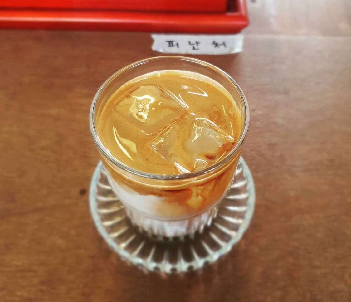 LP 음악이 깔리는 카페 안은 사장님이 테이블에 붙여놓은 ‘피난처’라는 단어와 딱 맞게 평화로운 편. 음악과 커피 향이 창밖에 보이는 바깥세상으로부터 나를 끌어당겨 위로를 해주는 기분이 든다.