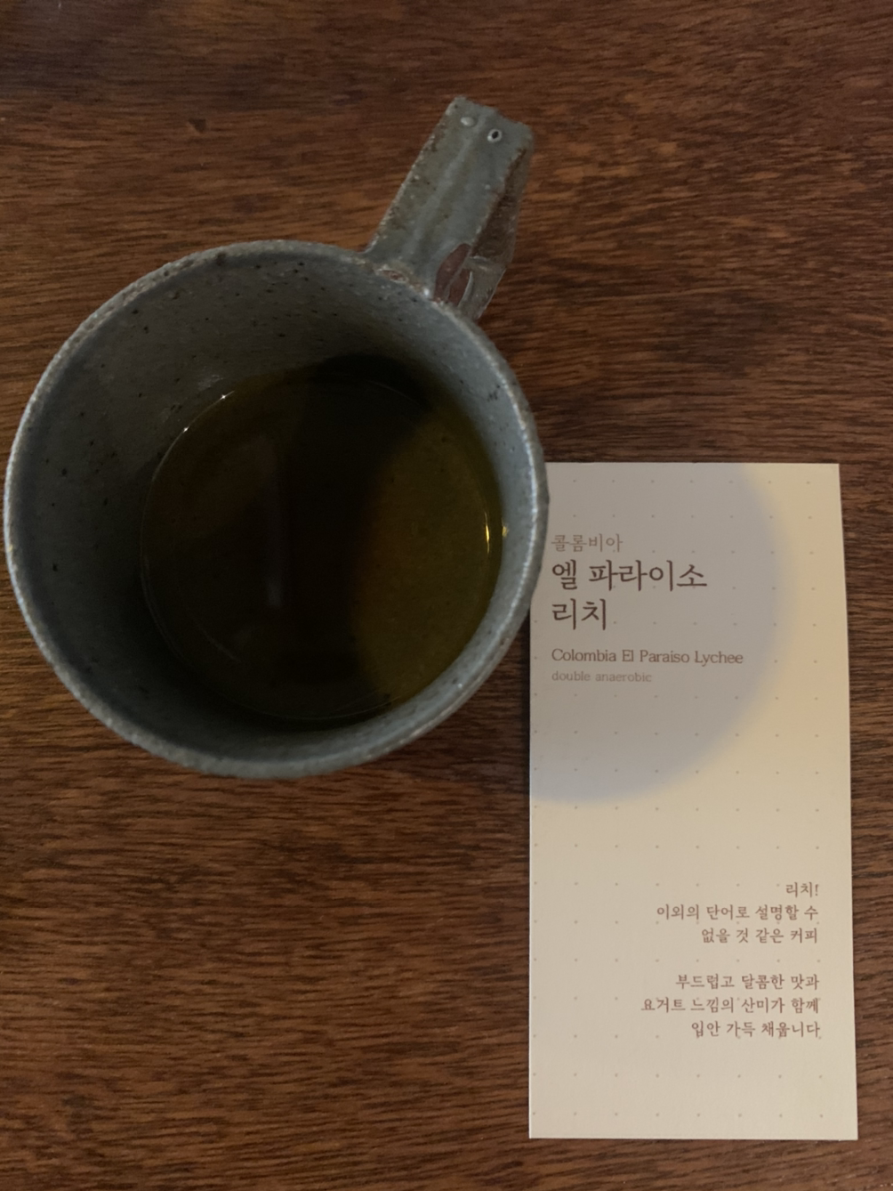 남기는 것이 불가한 디저트를 마저 먹고 물을 한잔 청해 마셨다. 원두를 구매하려고 하니, 새로운 커피를 작은 잔에 한잔씩 맛보기로 내어주셨는데 세상 마상에 얘도 맛이 기깔나네!