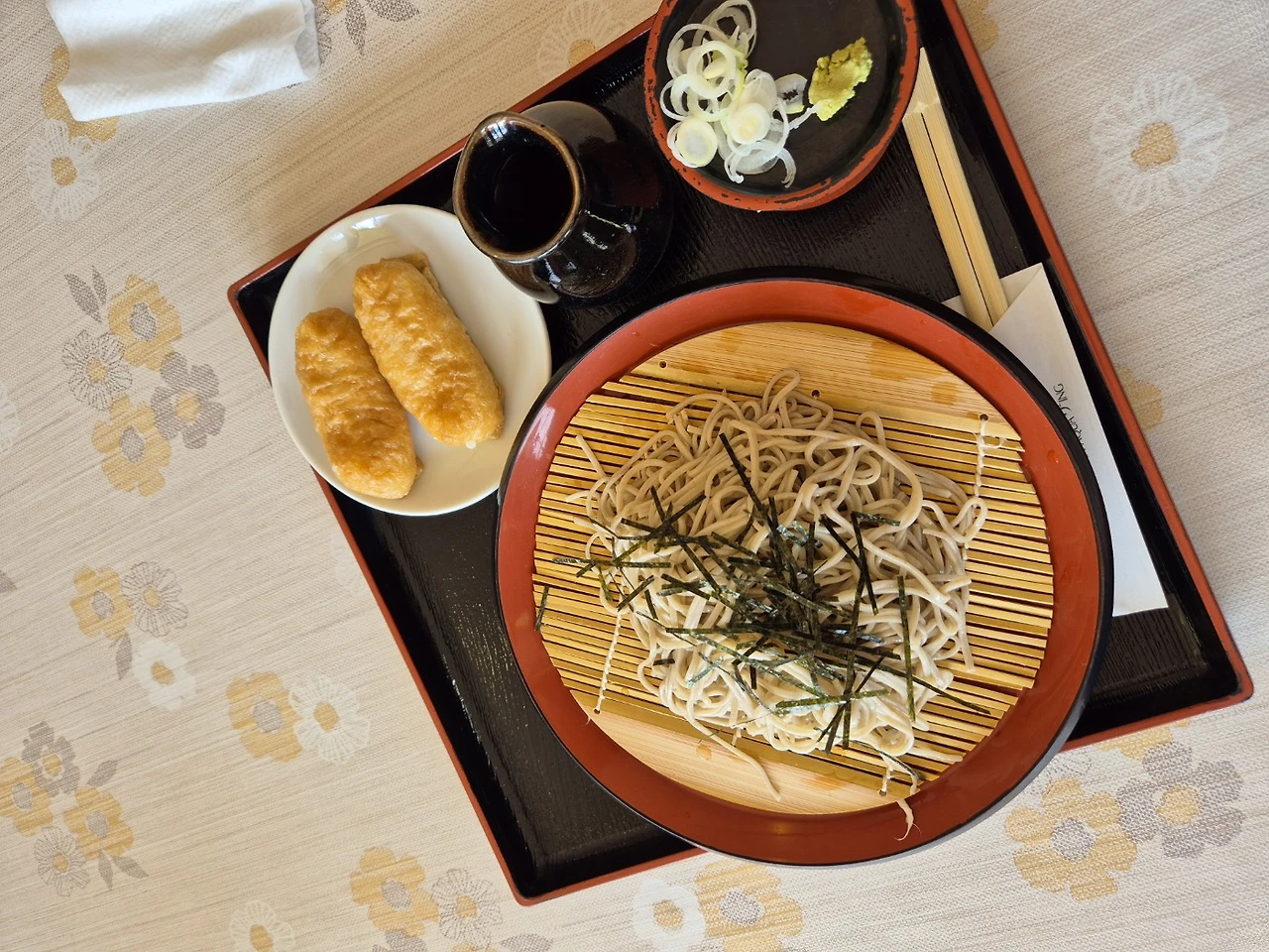 주유소를 찾아 작은 동네에 들어섰다. 주유를 하고 동네 안쪽을 잠시 도는데, 산속으로 호텔 안내판이 보여 무작정 들어와 봤다. 작은 호텔은 가족 단위가 많이 찾을만한 정겨운 분위기, 건물 밖으론 캠핑존도 있었다. 호텔 로비 레스토랑에서 귀여운 식사(소바&유부초밥 세트)를 팔길래 점심을 이곳에서 먹기로 결정.