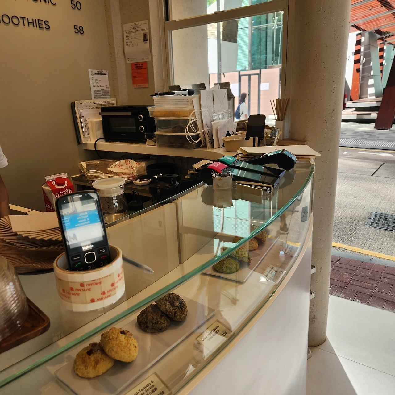 여기도 커피머신은 라마르조꼬다. 분명 홍콩은 영국령이였던 기억이 나는데 어쩌면 커피 업계만큼은 이탈리아쪽일지도 모른다. 홍콩 여행의 마지막 날, 원래는 한번 가봤던 코코 에스프레소를 가려고 했다. 그런데 그곳에 사람이 줄을 서서 기다리고 있는걸 목격했다. 어쩔수없이 새로운 곳을 가보기로 했다. 바로 건너면에 있는 ‘JOMO'는 홍콩 카페답게 안쪽에 주방도 있는 공간이었다.