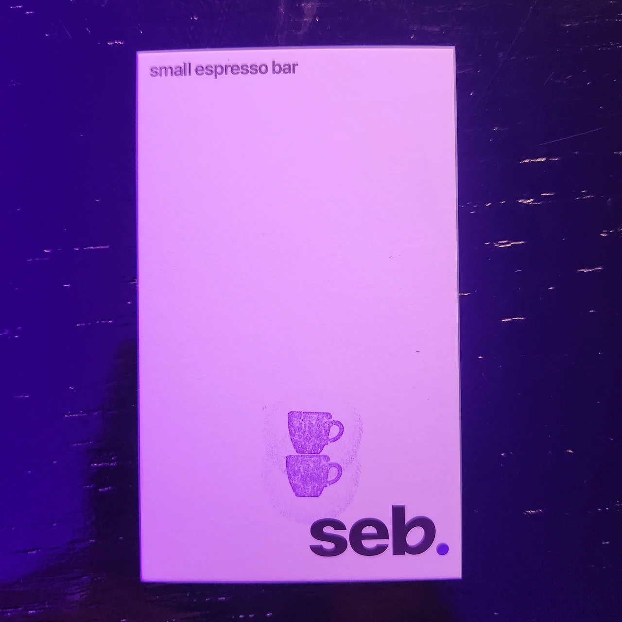 이곳의 커피 쿠폰은 참 재밌다. 커피 잔모양 도장을 쌓아주는 방식으로 찍어준다. 에스프레소 바에서 커피 잔을 쌓아놓고 사진 찍는게 유행이였는데 거기서 따온 모양이다. 재밌고 귀엽다. 나는 카페를 차리면 쿠폰을 어떻게 만들까. 유명한 소설 문장을 나눠서 찍어줄까. 그럴려면 도장이 한 10개 정도 필요한데. 심지어 순서대로 맞춰서 조심 조심 찍어야하니 더 귀찮을지도. 바에 앉아서 창업에 대한 생각이나 실컷 하다가 나왔다. ‘스몰 에스프레소 바’, 줄여서 seb. 보라색으로 가득 채워서 흥미로운 공간이였다.