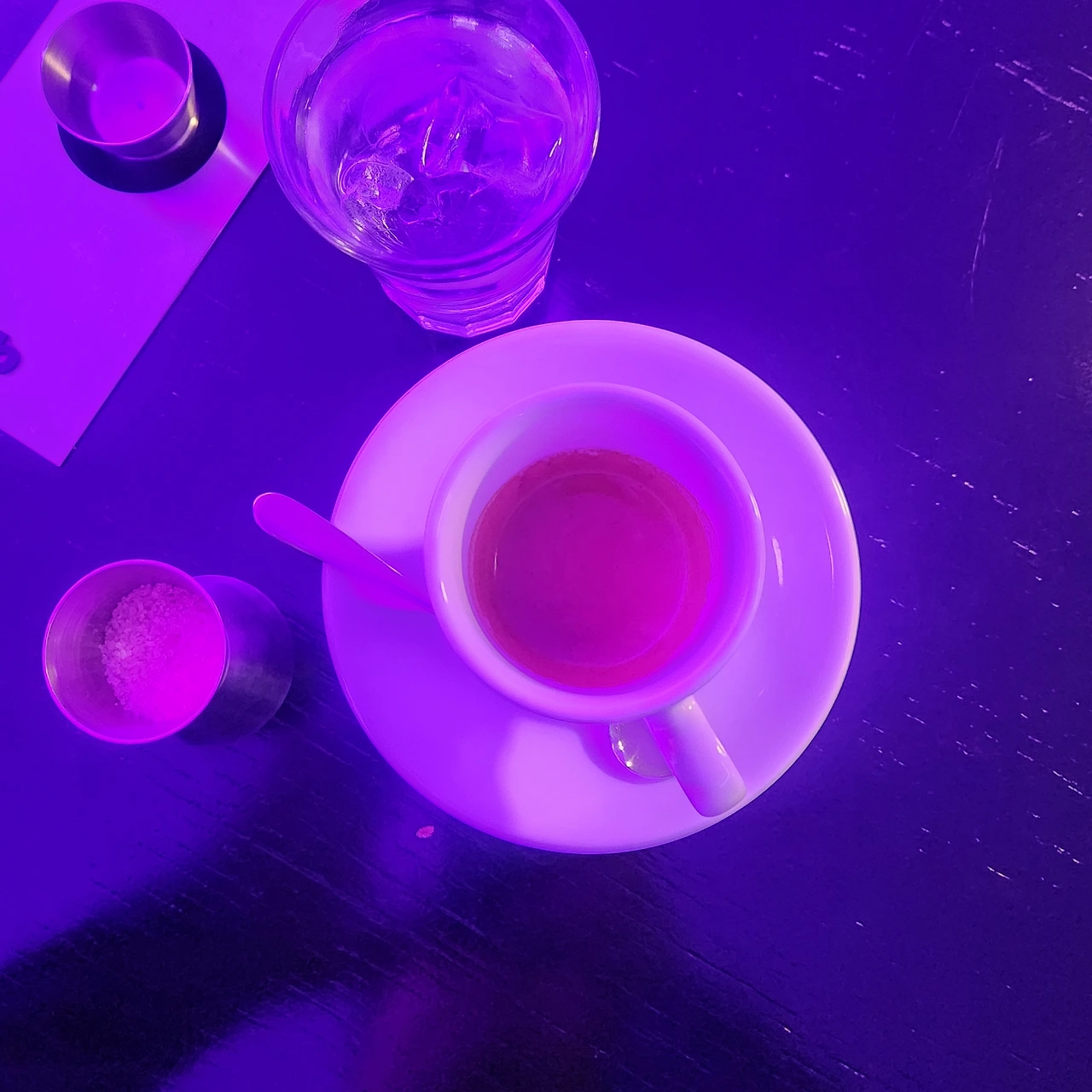 커피 향기가 보라빛처럼 살며시 다가온다. 입구는 평범한 에스프레소 바처럼 보이지만 안쪽으로 들어갈수록 보라색 빛이 짙어지기 때문이다. 덕분에 어떤 사진을 찍더라도 괴상한 보라색이 되어버린다.