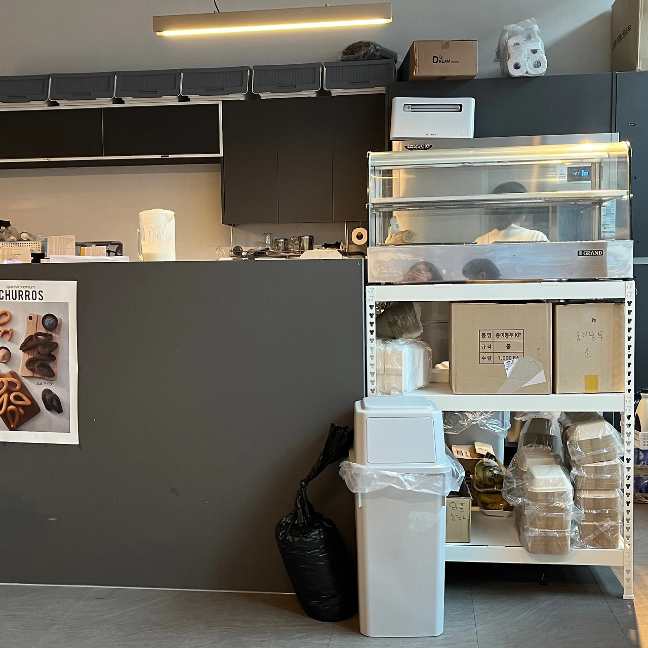뭔가 낚인 기분이지만 어쩔수없었다. 아인슈페너는 아메리카노에 크림을 띄운 맛이다. 커피와 함께 마시기엔 맛이 밍밍했다. 의외로 아메리카노는 맛이 괜찮았다. 블루베리 크로플은 정직한 맛이었다. 크로플에 생크림, 블루베리 잼을 올린 맛. 맛있게 먹고 나서 1층의 간판을 왜 안치웠을까를 생각해봤다. 결론은 딱 하나. 인수한지 정말 별로 안된 곳이다. 키오스크 옆에 놓인 개업 기념 화환과 분주한 주방, 그리고 잔뜩 쌓인 쓰레기와 박스들이 오픈 초기라는 것을 보여줬다. 과연 이런 배달 전문 카페가 잘 될까. 메뉴가 워낙 많아서 근처에 자취하는 사람들이 자주 주문할지도 모른다. 실제로 매장에 머무르면서 배달 주문이 꾸준히 들어왔다. 궁금한 점은 재고 관리하기 어려워보이고 배달팁이 생각보다 커서 매출보다 배달 대행료가 더 나올지도 모른다는 점이다. 커피 배달의 문제는 그거다. 커피의 단가가 낮아서 디저트류를 함께 배달해야하는데 디저트나 커피는 배달 중 망가지거나 흐르기 좋다는 점. 그나마 커피는 캔 실링기로 밀봉한다지만 생크림이 들어가는 크로플이나 스프, 시리얼류는 어떻게 배달하는지 모르겠다. 다 방법이 있겠지 싶다.