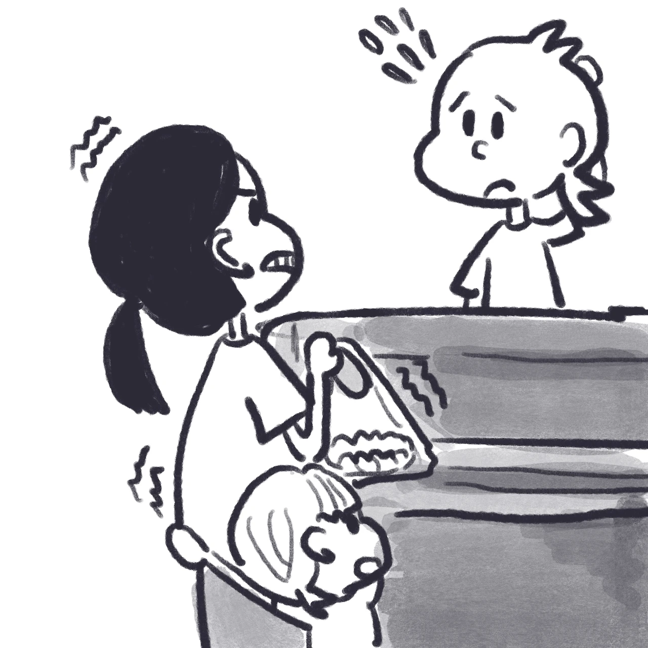 곧이어 내려온 엄마가 "계란이 왜 깨졌어?!" 라면서 화를 내자 아이는 직원들을 바라보며 엄마 뒤로 숨었다. 순간 그 어머니는 직원들을 째려보면서 의심의 눈초리를 보냈다. 아이가 떨어트려서 깨졌다고 설명을 드렸고, 그 손님은 화를 눌러 참는듯 우리를 째려봤다. 그러고는 계란 다시 안 가져오고 뭐 하냐고 화를 냈다. 그렇게 새 계란을 가져다 드렸고, 당연히 아이가 떨어트린 계란도 같이 계산하고 봉투에 따로 담아드렸다. 사장님이 안 계시니, 어쩔 도리가 없었다. 그랬더니 "참나, 이걸 계산을 하네?? 하!!" 라고 혼잣말로 내뱉고, 우리를 노려보며 봉투를 낚아채 가게를 나갔다.