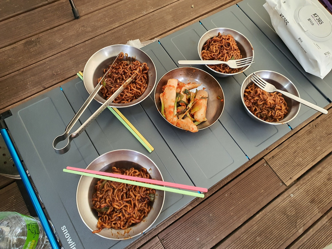 밖에서 먹으면 더 맛있는 짜파게티. 극성스레 챙겨간 시어머니표 알타리가 신의 한 수다.